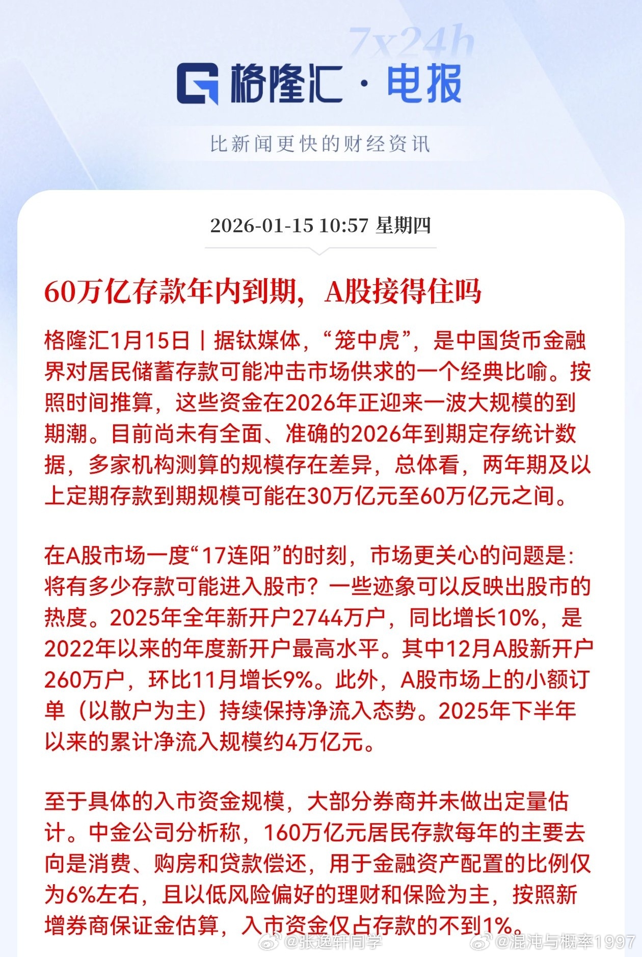 60万亿存款年内到期,A股接得住吗?接住以后多少点了?