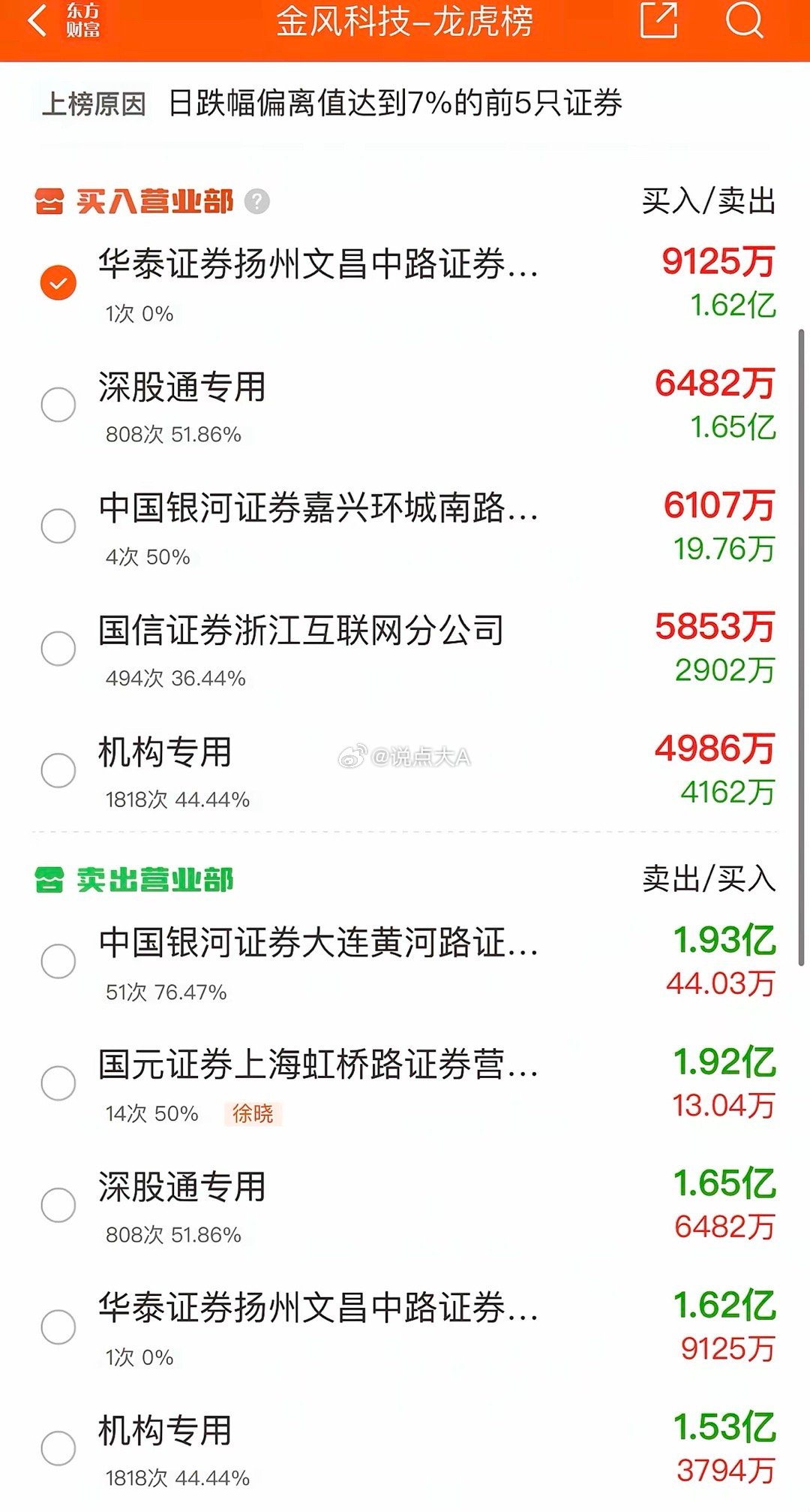 2026年1月15日,陈小群出货1.93亿,各大股吧前十热股:淘股吧: 1.人民网 2.利欧股份 3.三变科技 4.蓝色光标 5.华胜天成 6.视觉中国 7.海格通信 8.七彩化学 9.外服控股 10.石基信息东财吧: 1.利欧股份 2.华胜天成 3.岩山科技 4.特变电工 5.蓝色光标 6.山子高科 7.航天发展 8.美年健康 9.三维通信 10.省广集团同花顺: 1.利欧股份 2.华胜天成 3.岩山科技 4.金风科技 5.航天发展 6.海格通信 7.蓝色光标 8.三维通信 9.山子高科 10.特变电工今日成交缩量1万亿,全天成交额回落到了29055亿。上涨家数2230家,下跌家数3121家,涨停家数66家,跌停家数72家。市场缩量调整,两大主线齐齐退潮,资金选择高低切。最惨的还是商业航天板块,昨天成交170亿,最后封住涨停的海格通信今天一字跌停,跌停板上好几十亿,直接带崩了商业航天板块。金风科技收盘跌停板还有50多亿按死,龙头航天发展再次跌停,从没见过龙头还能吃3个跌停的,只怪自己的愚蠢格局。接下来看不懂了,有反弹的建议先出局,如果明天商业航天再来一场跌停潮,建议清仓过年。毕竟商业航天涨幅过大,如果资金选择修复的话,也会优先选择AI应用端。