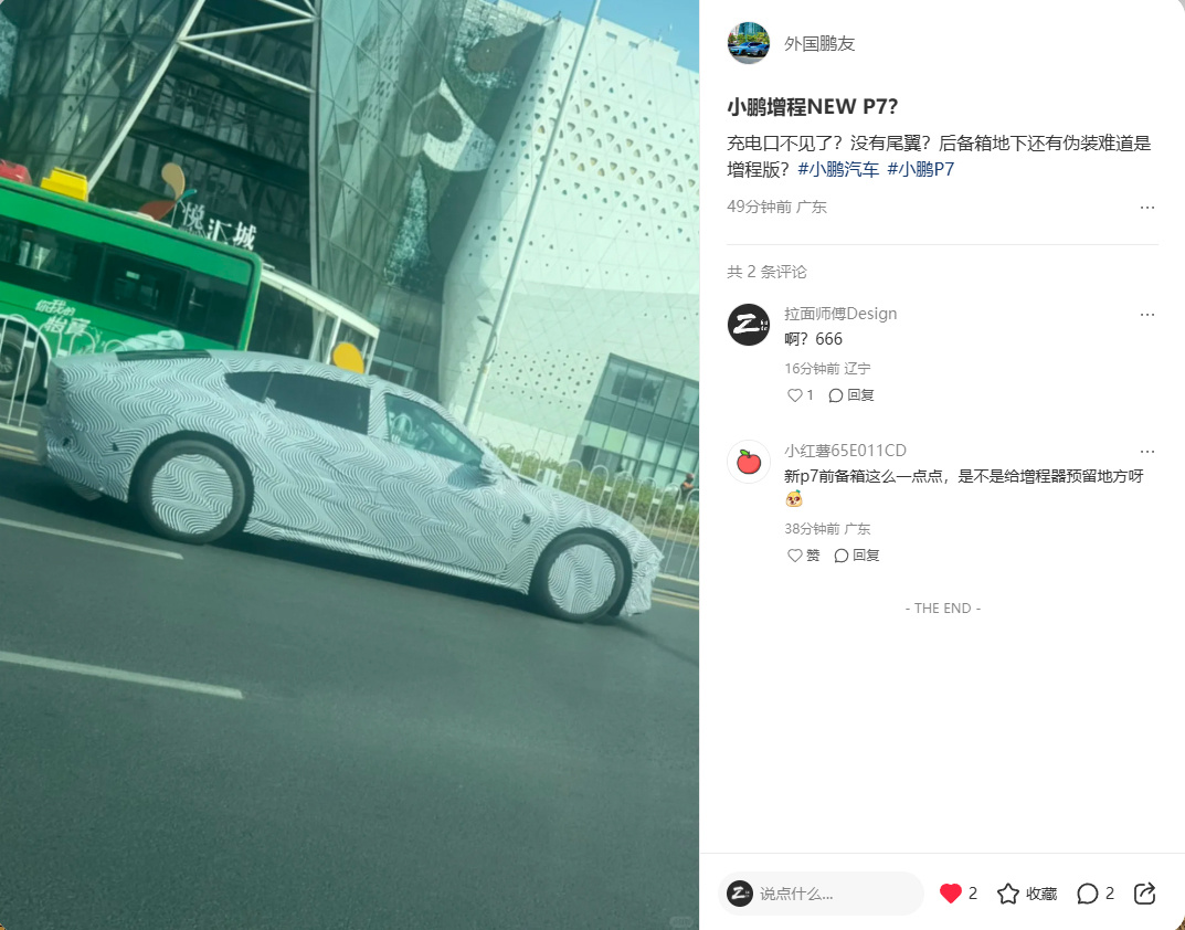 小鹏新P7有一版副驾没有充电口的测试车?啥情况?图源XHS“外国鹏友”