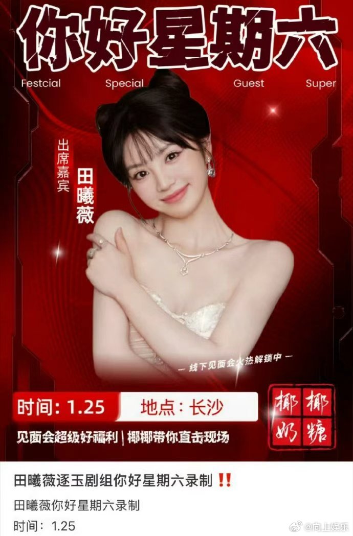 网传张凌赫田曦薇录制你好星期六张凌赫、田曦薇要在1月25日合体录制你好星期六,逐