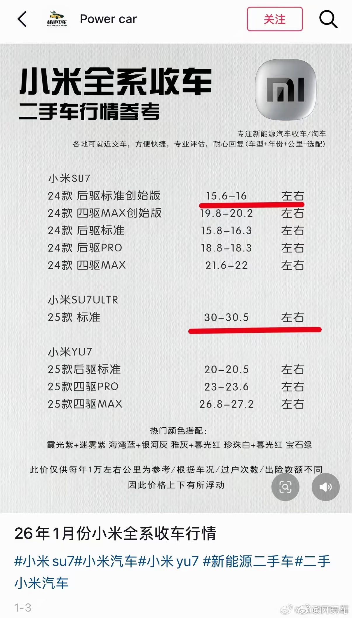 毕竟是两年前的车了,小米SU7二手车价格跌一跌很正常吧