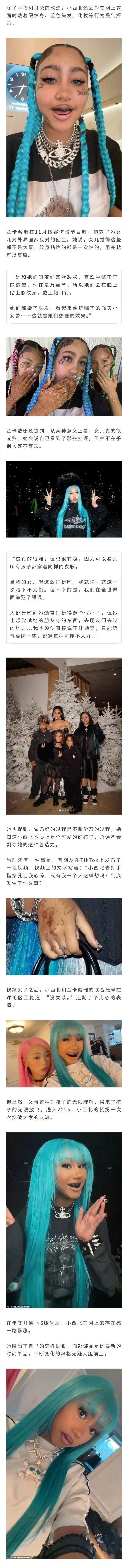金卡戴珊和侃爷的12岁女儿小西北,因为装扮过于成人化被网友各种批评,她本人最近回怼:我就是喜欢这样!