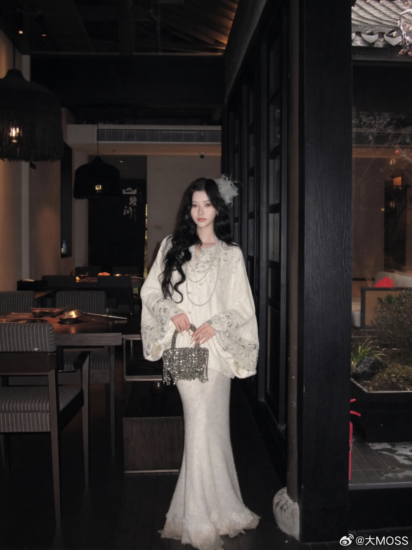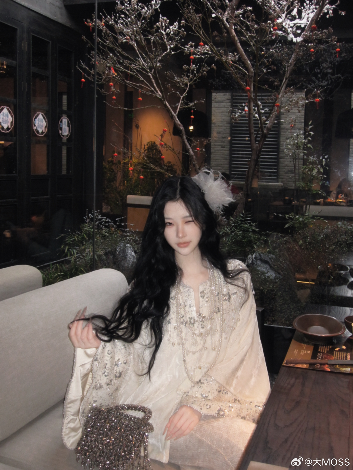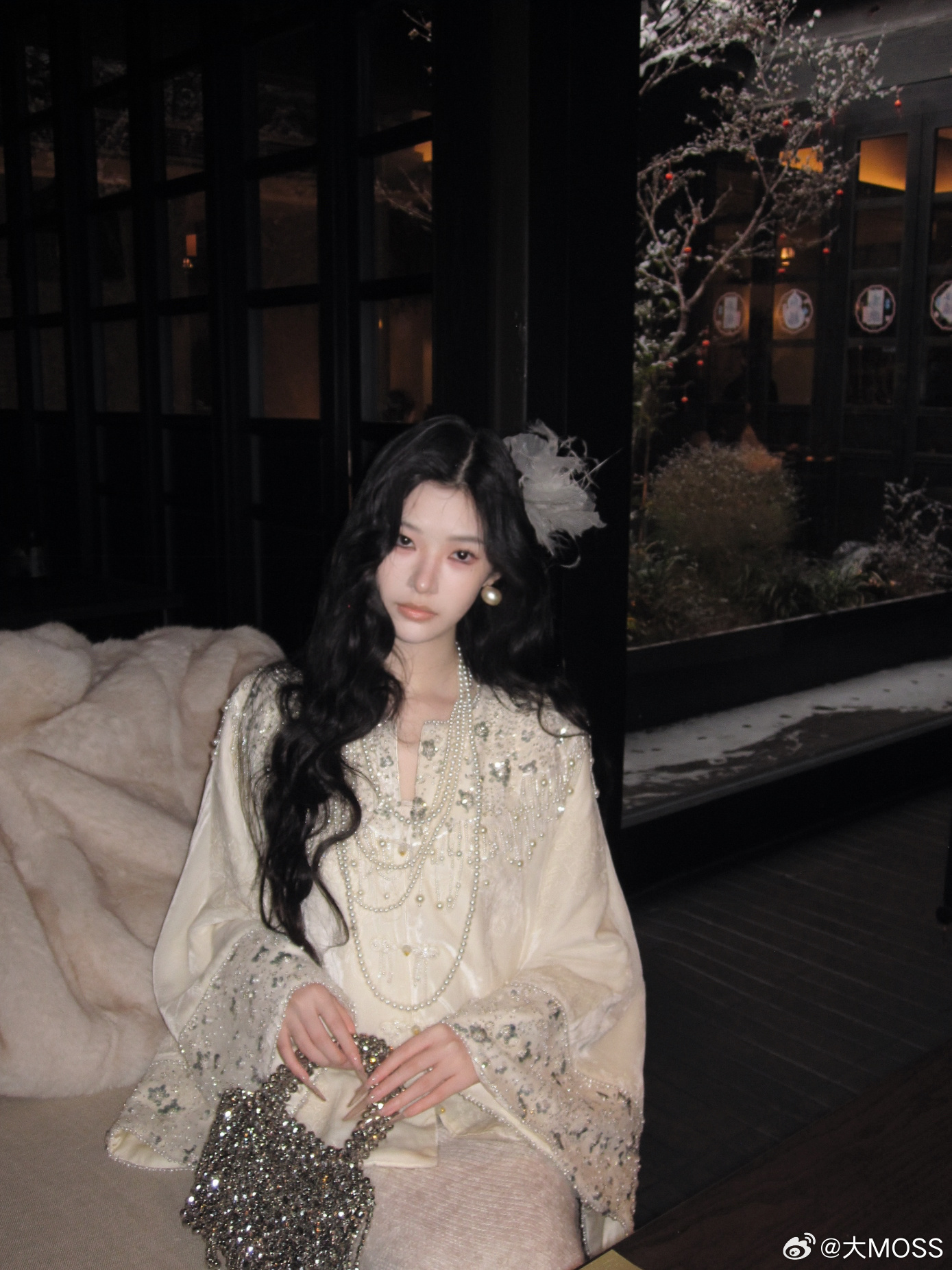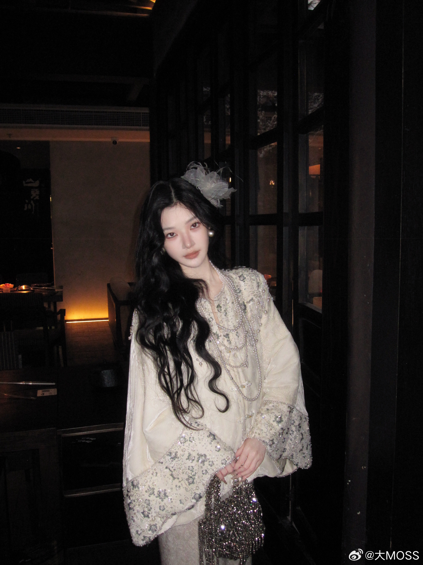 𝑴𝑶𝑺𝑺 𝟏.𝟏𝟓/𝟐𝟎:𝟎𝟎𝒑𝒎【珠玉生烟】🤍重工原创定制线绣丝绒珠绣拼接夹棉外套流光米色线绣丝绒面料自带柔润哑光质感,衣身暗纹线绣隐现花卉轮廓,低调中透着雅致;肩部采用了极具东方韵味的假云肩设计,云肩处拼接立体亮片花与珍珠网纱,网纱上缀满定制珍珠流苏织带,行走间流苏轻摆,亮片泛光,领口珍珠夹边条与门襟水晶流苏盘扣强化细节精致度,珍珠的柔润与水晶的清透形成呼应,每一处拼接都彰显定制级工艺的细腻。新中式穿搭