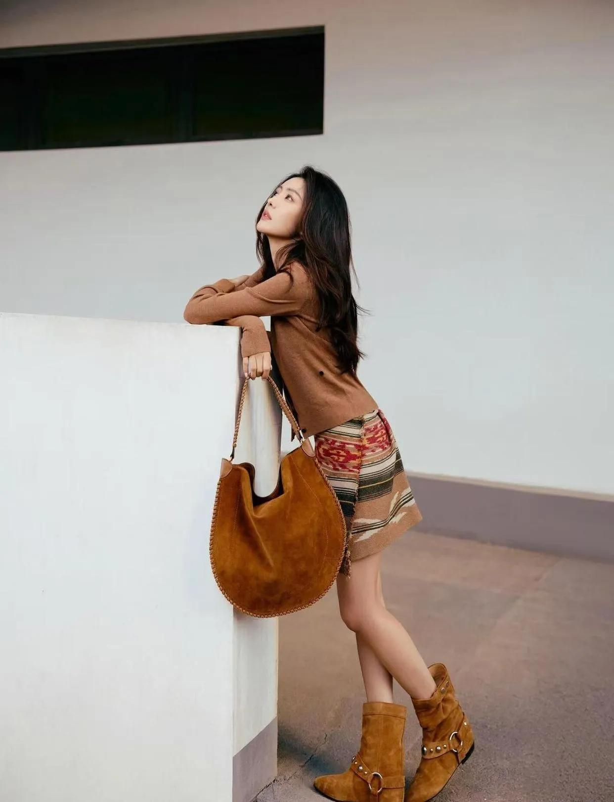 蔡文静的私服穿搭又把高级感玩明白了! 一身棕调搭配,针织衫+同色系超大托特包,温暖又显质感,下身的格纹阔腿裤增添复古层次,整套造型慵懒随性又不失格调。她的状态松弛又舒展,清冷又柔和的眼神直接把氛围感拉满,完全是普通人能直接抄作业的穿搭模板!