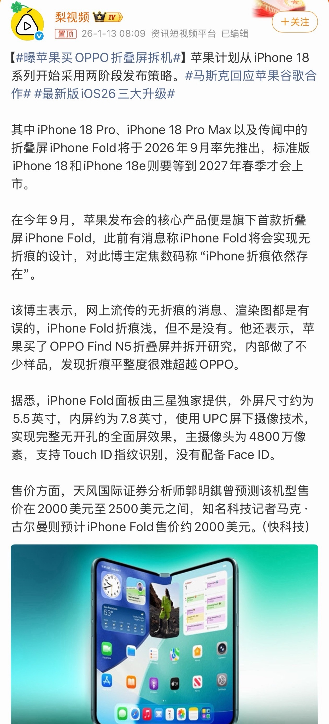 苹果官宣iPhone将搭载最强AI苹果谷歌官宣合作iPhone 将搭载最强 AI!马斯克第一个跳出来挑毛病苹果与谷歌的“世纪联姻”只是一个开始,期待更多的惊喜和变革。曝苹果买OPPO折叠屏拆机前两代做的都非常有意思,也有很特殊的比例形式。现在也是明显的浅,也难怪苹果会买回去研究了。