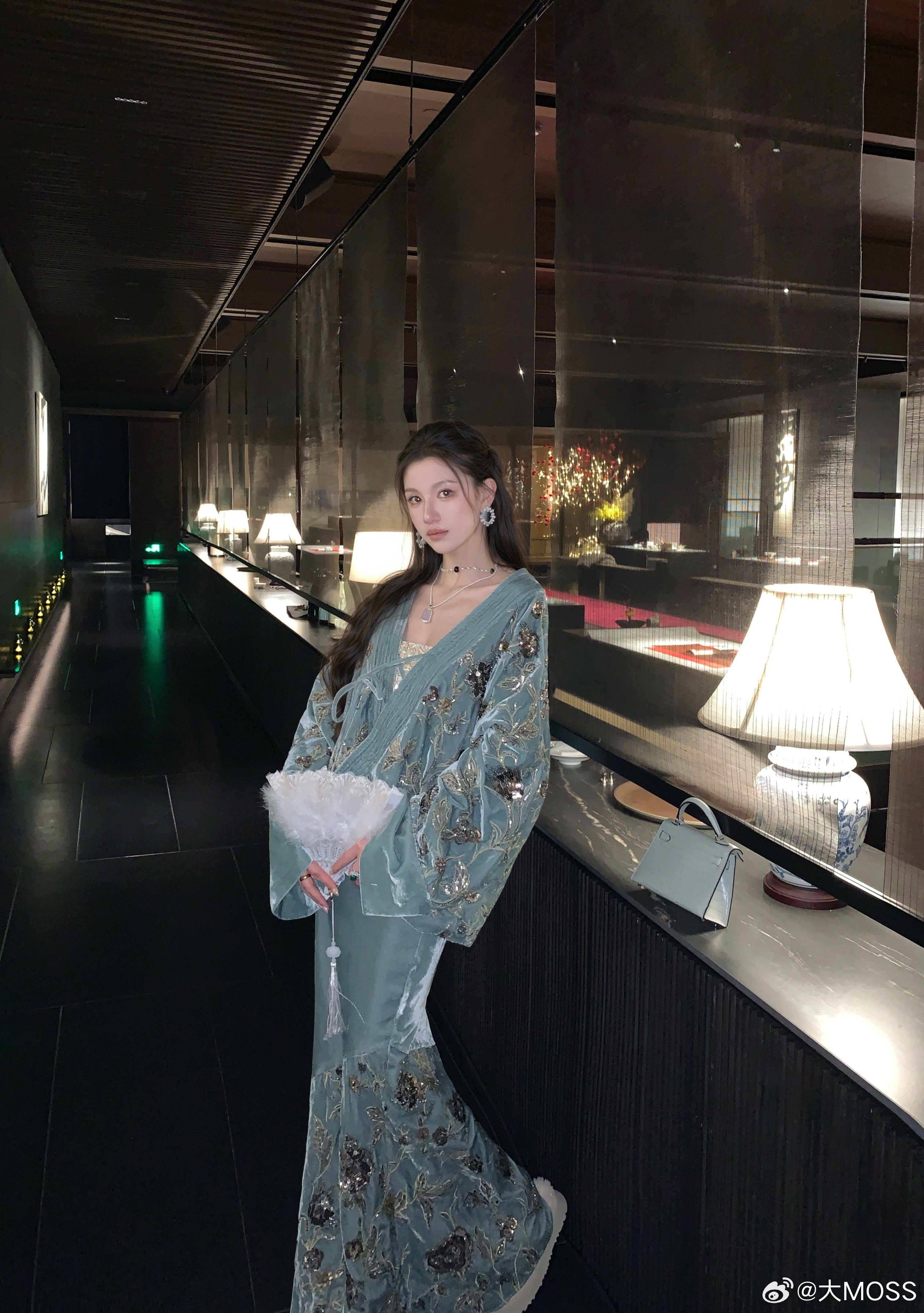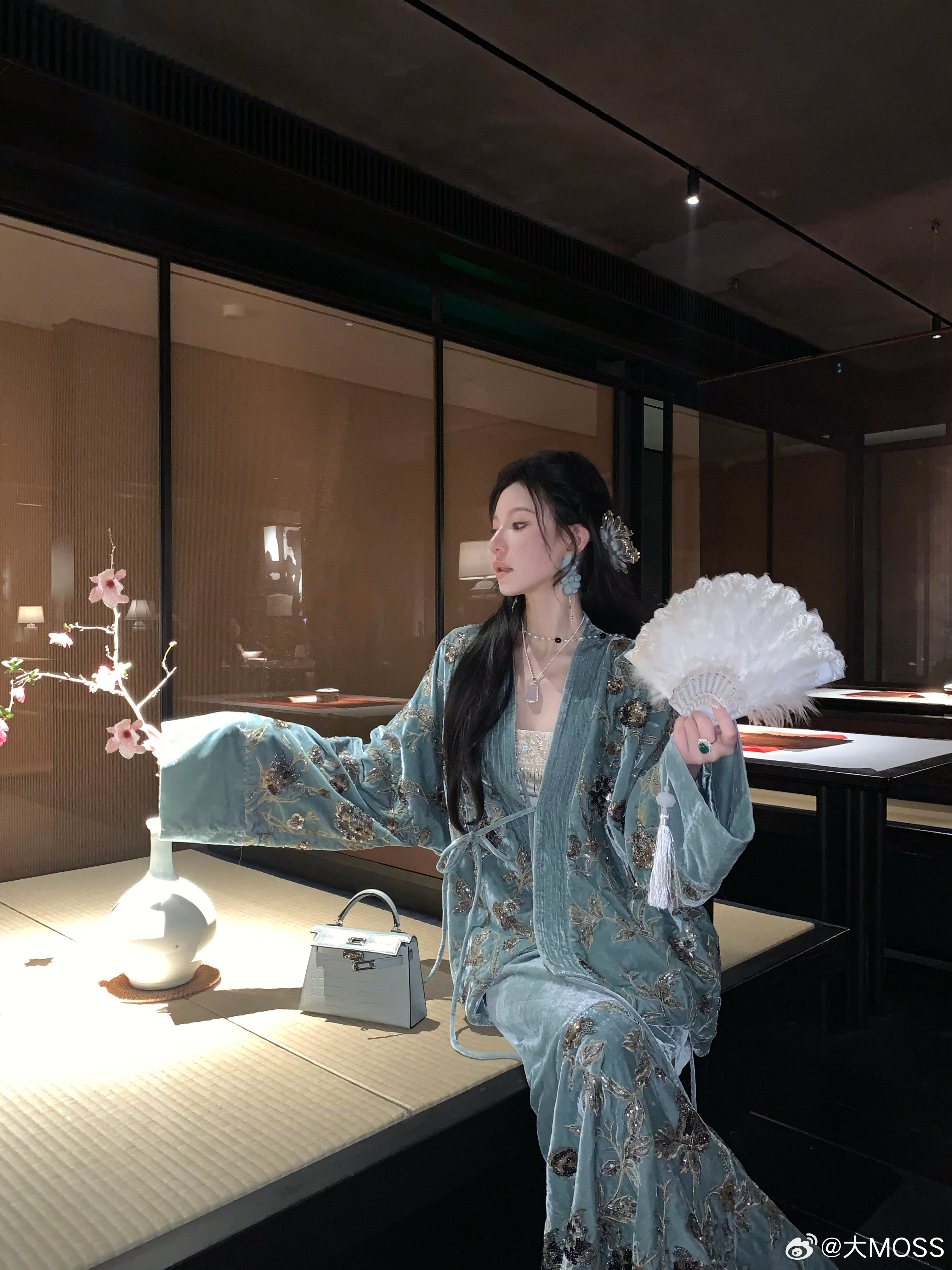 𝑴𝑶𝑺𝑺 𝟏.𝟏𝟓/𝟐𝟎:𝟎𝟎𝒑𝒎【兰亭旧雪】🏯❄️新中式重工珠绣丝绒系带斜襟外套+半裙上衣衣服采用极具传统东方美学的斜襟设计,系带设计可自由调节松紧,既强化了国风辦识度,衣身垂坠感极佳,袖管自然舒展不紧绷,完美适配所有身形穿着。羽扇蓝重工珠绣提花丝绒自带柔滑光泽,花卉纹样以珠绣🪡与提花双重工艺勾勒。半裙裙子采用拼接设计,上半部分使用了素色丝绒面料,色调如雾面青羽般温润,行走间泛着低调的绒面光泽。裙摆使用了同色重工珠绣丝绒,花卉纹样以珠绣与提花双重工艺勾勒,蓝金交织如羽扇缀光,与裙身形成独特对比,极具层次感。裙子采用隐拉设计,方便穿脱的同时也不影响外观,极具实用性。新中式穿搭