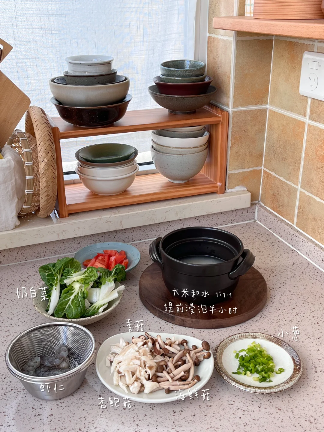 大米提前浸泡30分钟 放上喜欢的菌菇