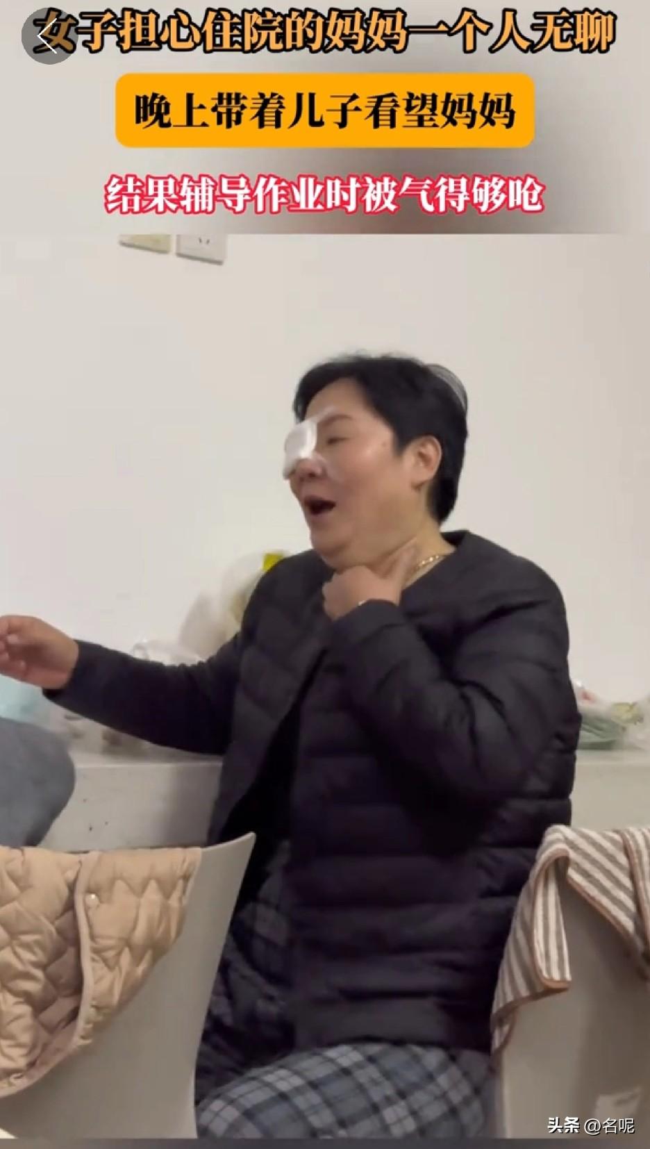 真是太“孝顺”了! 一女子担心住院的妈妈一个人太无聊了,于是晚上带着儿子去看望妈妈。结果妈妈辅导外孙作业够呛了。 气得妈妈,直接上手拍外孙头了。还不够,看着妈妈掐着自己的脖子,嘴巴张大呼吸。这是女子怕妈妈恢复得太快了吗?感觉马上就可以从眼科转心内科了!妈妈心脏承受不住! 事实证明,辅导作业比拔氧气罐还要严重,直接凌迟了! 这女儿真够“孝顺”啊!但是这种孝顺,我相信没有哪个妈愿意要!