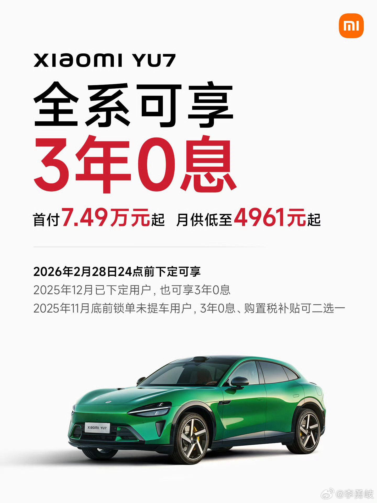 对标的就是特斯拉!小米YU7的7年低利息政策来了!首付4.99万,月供低至2593元起今年大家都要拼刺刀了!