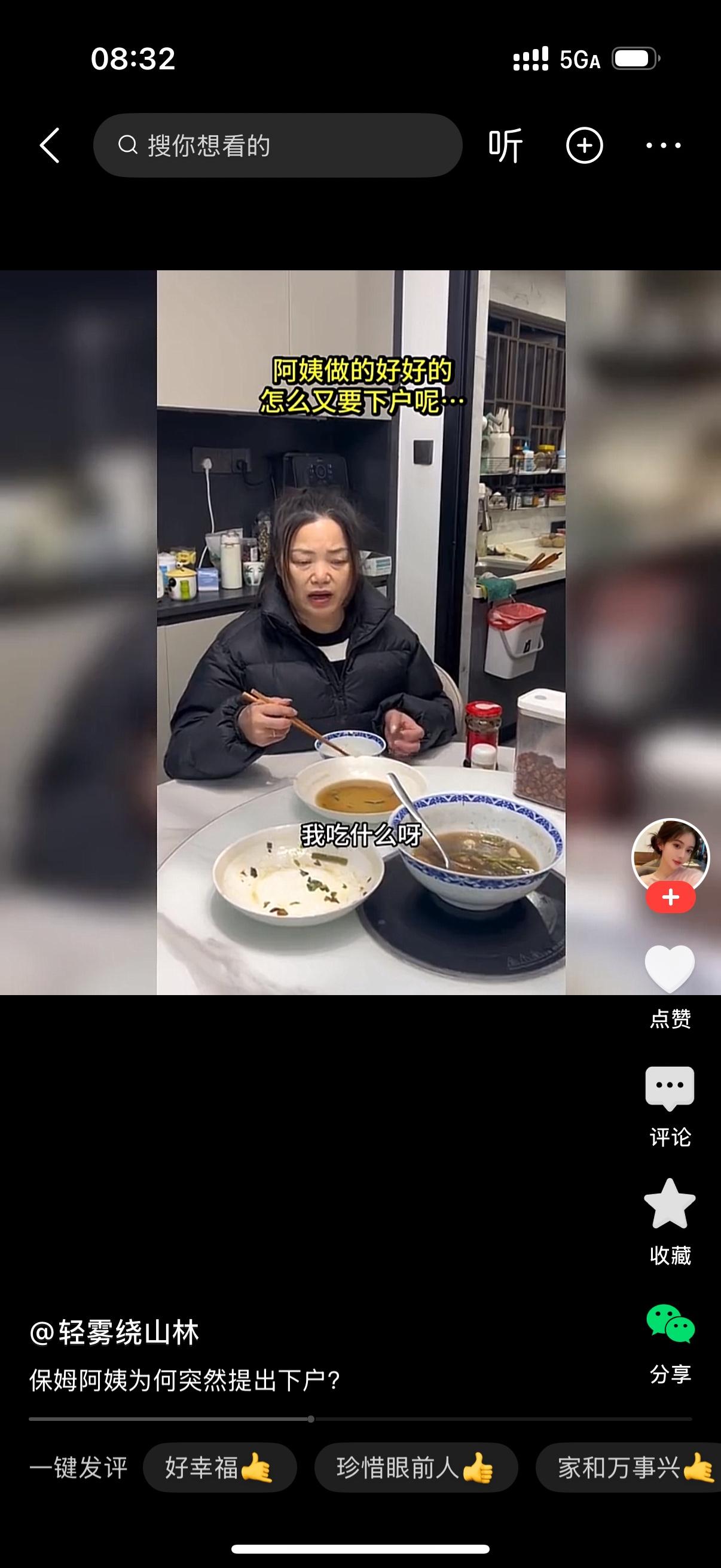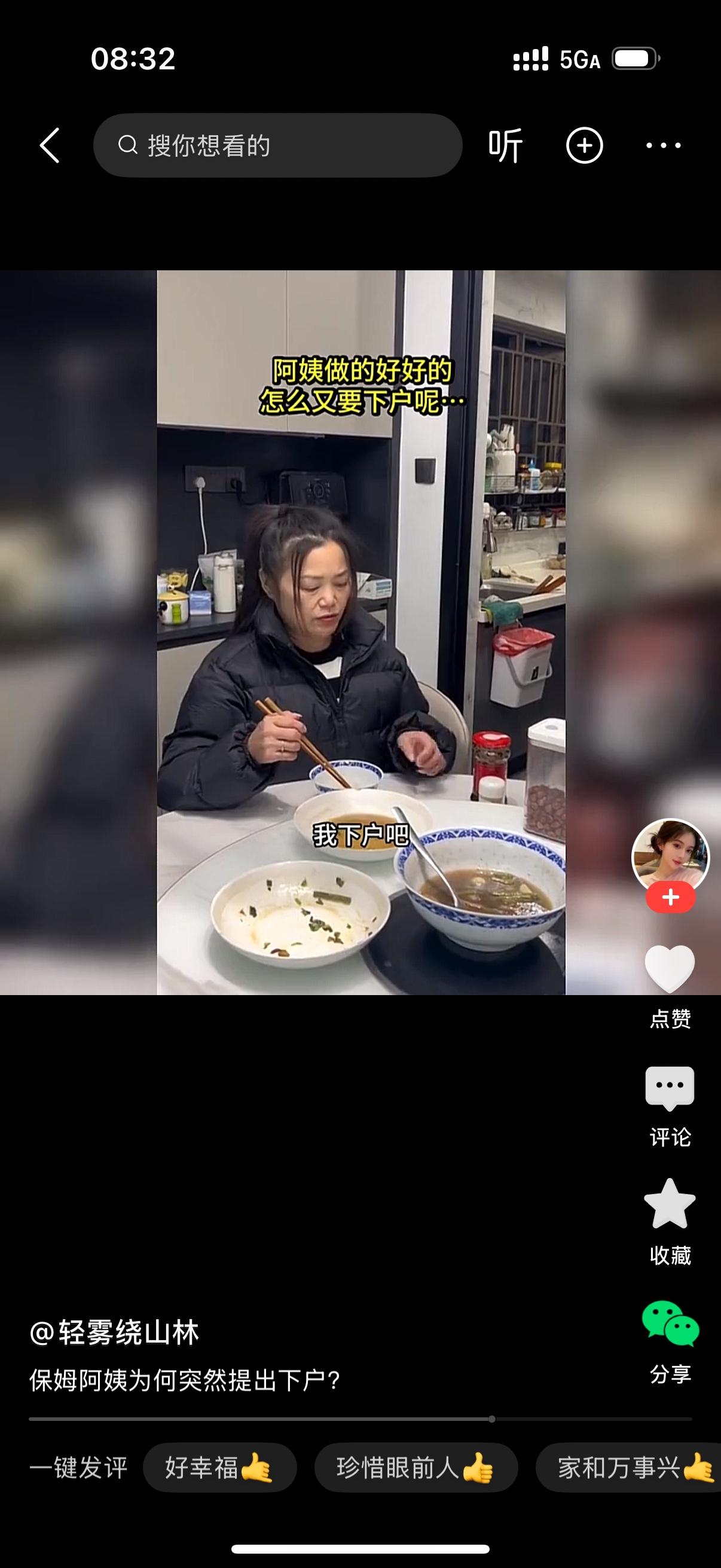 雇主一家人吃完饭,叫保姆过来吃,阿姨,忙完了吗?我们吃完了,你过来吃吧。保姆端着碗过来,看到餐桌上已经没有菜了。她内心很崩溃,问雇主,你们都吃饱了,我吃啥?雇主说,那不是还剩一点菜吗?将就着吃吧。保姆越想越气,说我来你家一个月,天天吃不饱,我不干了。雇主却说,你一个保姆有口白米饭吃就不错了,还挑三拣四?保姆没想到雇主狗眼看人低,直接拎包走人。