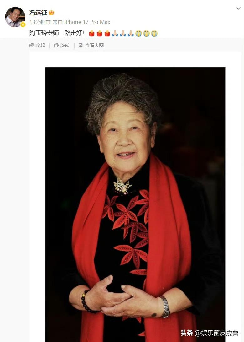 陶玉玲老师,怀念您🙏🏻 2026年1月15日16:25,著名电影表演艺术家陶玉玲在北京逝世,享年92岁(实为91周岁)。央视新闻、人民日报等权威媒体同步发布讣告。冯远征率先发文“陶玉玲老师一路走好”,成为最早公开确认消息的业内人士。 陶老师一生为了表演事业兢兢业业,她塑造的“二妹子”“春妮”等经典角色成为几代观众的集体记忆。23岁初登银幕,凭《柳堡的故事》中清纯坚韧的“二妹子”火遍全国,主题曲《九九艳阳天》引发跨代怀旧。《霓虹灯下的哨兵》中温婉坚毅的军属形象获周恩来总理称赞“演活了战士家属”。91岁出演遗作《靠近我看见你》,登台2025年央视中秋晚会,并获中国电影三大终身成就奖(2015百花奖、2016金鸡奖、2017金凤凰奖)。 然而,陶玉玲老师与癌症顽强抗争了33年,1993年口腔癌(治疗中避免毁容)、1995年肺癌、2013年面部基底细胞癌,曾因术后40天无法进食仍坚持重返舞台。老艺术家对艺术的执着追求让我们肃然起敬,她是中国演艺界的常青树,更是生活的强者。 让我们再次为陶老师鼓一次掌吧!! 表演艺术家陶玉玲去世 享年92岁
