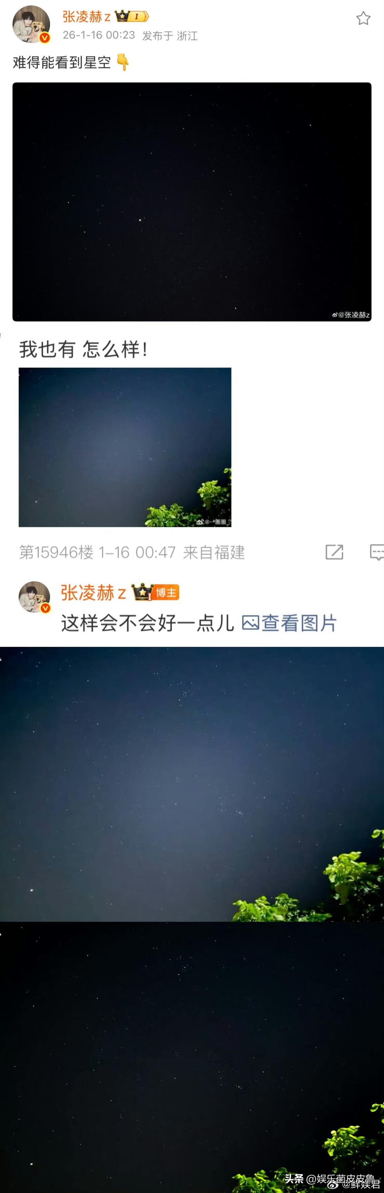 张凌赫,活该你能火! 1月16日,张凌赫在微博分享星空照片后,粉丝在评论区晒出自己拍摄的星空图。他主动将粉丝照片调整亮度、清晰度等参数,并回复:“这样会不会好一点儿”。空降评论区亲自下场修图,这太宠了吧,活人感拉满,还温柔喊粉丝“妹妹”,这姑娘今天能激动一天,幸福了!