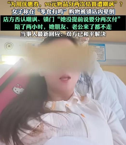这下真是出名了!不仅四川人,全国人民都知道了。女子在零食有鸣购买了一些商品,竟然被店员拒绝分两次支付,而且还在背后蛐蛐她。 谁能想到,一场围绕支付方式的小纠纷,会演变成让品牌方焦头烂额的公关危机,九十多块钱,买来了几包零食,也引爆了一场全网关注的风波。 事情发生在1月10日晚10点20分左右,成都“零食有鸣”水岸花园店的收银台前,氛围渐渐变得紧张。女子挑完零食结账时,价格牌最终定格在93.25元,她突然想起手机里有张快要过期的满减券,想着拆分两笔订单支付,刚好能用上优惠券省点钱,便小声向店员询问是否可以分开结算。 店员的反应瞬间充满不耐烦,一句“都扫完了才说”带着明显的抵触情绪砸了过来,语气里的嫌弃毫不掩饰。女子心里虽有委屈,却也没再多争辩,默默扫码付完钱就往店外走,本想就此翻篇,不再纠结这点小事。 可刚走出店门没几步,店内飘来的闲话就精准钻进了她的耳朵,那句带着嘲讽的“九十块还要分两次付,真是够抠的”,像一根火柴点燃了积压的情绪。 她当即转身返回店内,和店员展开对峙,双方各执一词,争执越来越激烈。原本门店晚上10点30分就该下班,这场纠纷却一直僵持到深夜。过程中,店员曾将女子购买的零食退款,以到点下班为由要求她离开,可情绪激动的女子不愿就此罢休。 有说法称门店关灯后将女子留在店内近40分钟,店方则辩解没有锁门,只是到点下班,工作人员一直陪着等待调解,直到女子丈夫赶来,双方仍未达成一致,最终还惊动了警方到场介入。 这场争执让女子情绪彻底崩溃,后续因出现创伤应激反应被送往医院治疗。出院后,她把事情的经过发布到网上,短短几天就引发全网热议。网友们纷纷站队,有人吐槽店员缺乏职业素养,不该用消费金额评判顾客,更不该背后嘲讽; 也有少数声音觉得没必要过度较真,但更多人认同拆分订单用券是合理消费行为,服务行业应守住尊重底线。 随着话题发酵,“零食有鸣”品牌方迅速介入处理。 1月13日下午,女子与品牌方达成和解,她删除了网上发布的相关视频,并表示双方已友好沟通,事情就此了结。 品牌方回应称已对涉事店员进行批评教育和相应处罚,承担了女子的相关医疗费用,同时优化了门店结算流程,明确允许顾客合理拆分订单使用优惠券,以此避免类似纠纷再次发生。 大家怎么看,可以在评论区留下您的看法