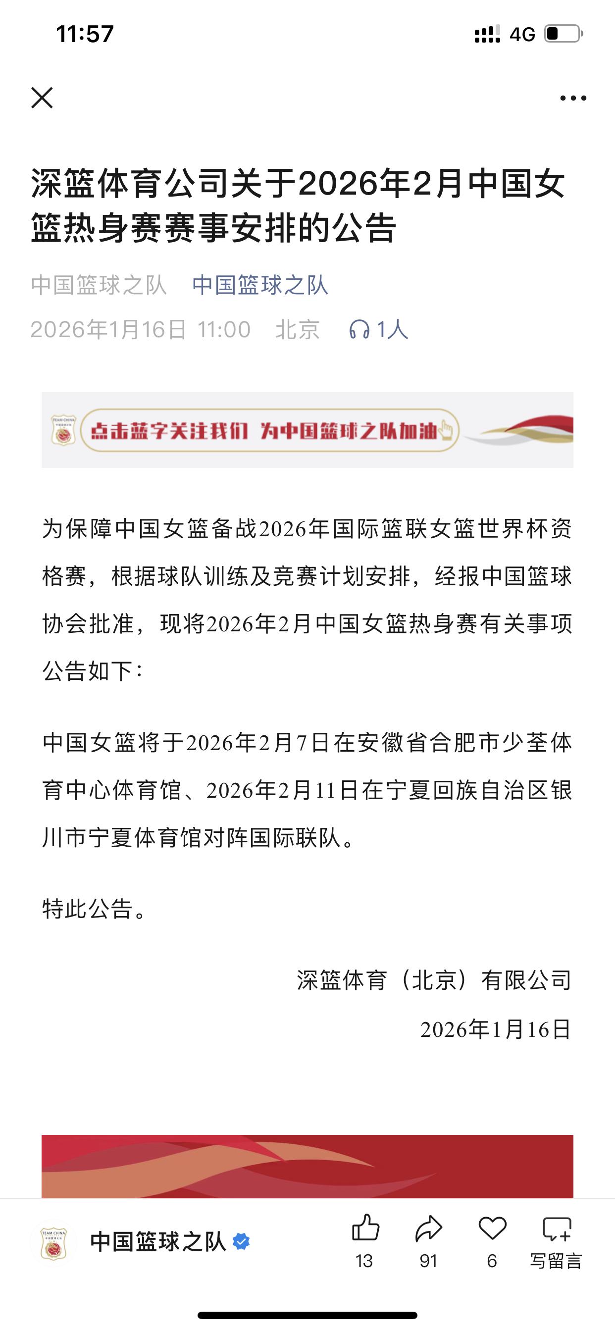 我就好奇,什么是国际联队? 就在一个小时前,中国篮球之队(中国男女篮国家队官方账号)发布一条信息,说将在2月中旬,进行两场热身赛,对手是什么国际联队? 我特意去微博搜了一下,没有哪位资深篮球媒体人解读过这个队伍,所以也不知道这到底是个什么队伍? 按照字面意思,我猜测大概率是一个女篮俱乐部队伍,不然谈何国际联队 上一次那个西班牙甲级联赛的尤文图特女篮俱乐部,就觉得有些可笑,因为对手竟然收着打,没有认真对待😂 不知道这次的所谓国际联队,到底能给中国女篮的带来怎样的作用!