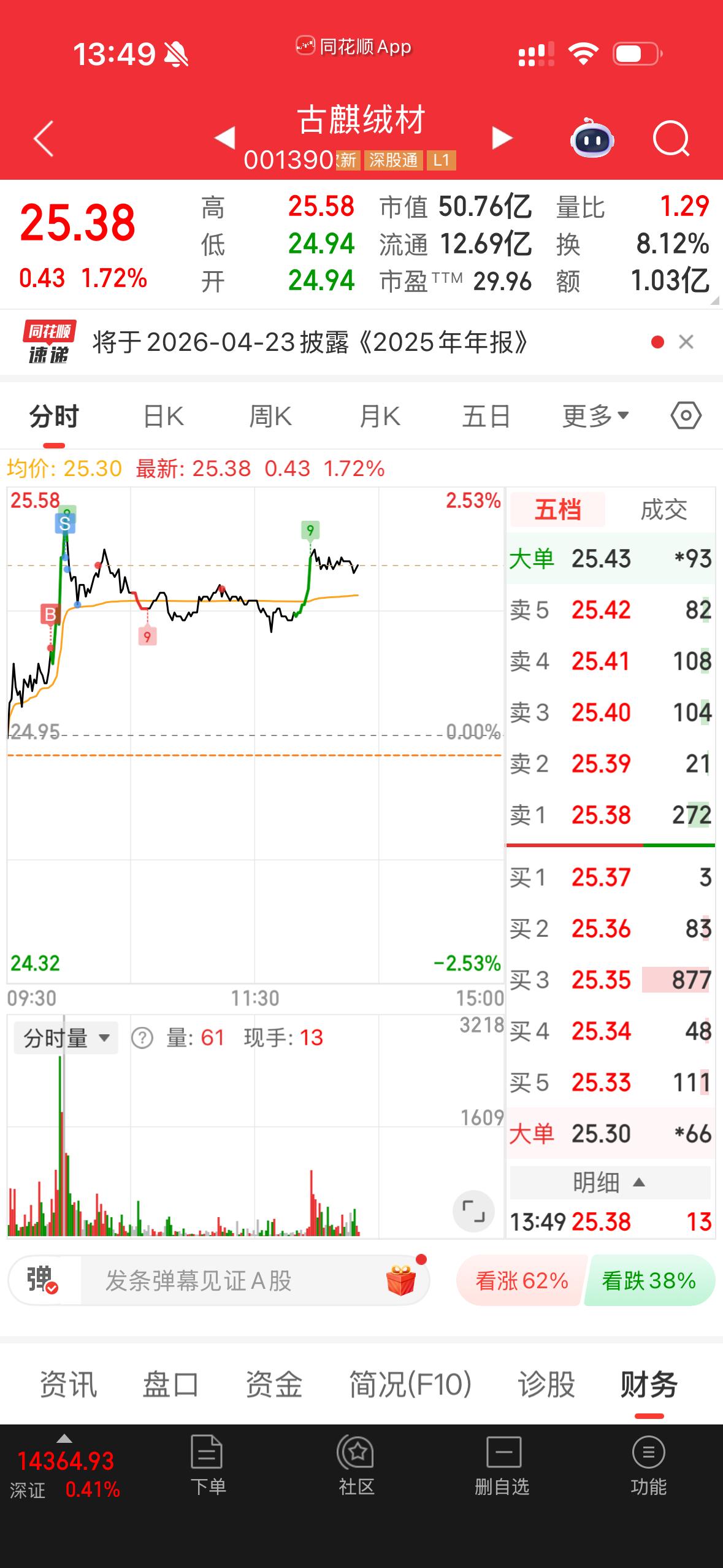 出现大买单被快速吃掉,核心是有资金主动兑现筹码,并非市场自然成交,具体分三种信号,需结合盘面细节判断: 1. 控盘资金诱多出货 大买单大概率是庄家自己挂的“托单”,目的是制造买盘强劲的假象,吸引散户跟风买入,随后立刻用手中筹码砸盘吃掉自己的买单,完成出货。这种情况通常伴随股价冲高后快速回落、成交量突然放大,且买单挂单位置多在买一/买二的显眼位置。 2. 主力洗盘的反向操作 若大买单被吃掉后,股价并未大幅下跌,反而在低位快速企稳,说明是庄家通过“吃掉自己的买单”制造抛压恐慌,逼出散户的获利筹码或止损盘,后续可能继续控盘拉升。这类洗盘通常量能无明显放大、股价始终在均价线上方运行。 3. 多空资金的真实博弈 若大买单是场外新资金的主动挂单,被场内获利盘或其他机构的卖单吃掉,说明多空分歧开始加大。结合古麒线材的控盘属性,这种情况概率较低,更多是控盘资金主导的盘面表演。