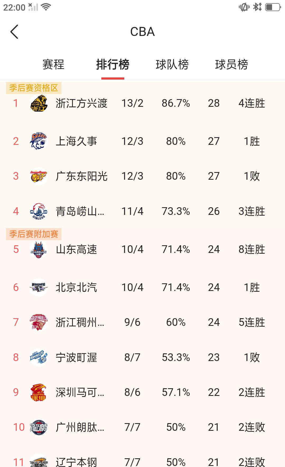 今天是1月16日星期五,随着昨晚上海久事客场大胜广东,山东队主场大胜宁波,浙江方兴渡大胜四川,一夜之间联赛排名发生明显变化。 CBA积分榜就像被推倒重洗的扑克牌,广东队主场失守时,记分牌上的分差定格在两位数,谁能想到卫冕冠军会跌出前二。 青岛队的名字突然出现在第四位,更衣室里的战术板还留着上一轮的攻防草图。 浙江方兴渡13胜2负的战绩不是凭空来的,他们最近五场比赛让对手得分都没超过90,这种防守强度在联赛里确实少见。 上海队紧随其后,12胜3负的战绩里藏着三个客场逆转,韧性这块做得确实到位。 山东队的崛起带着点戏剧性,同样是10胜4负,他们比北京队少赛一场却排在第五,这让不少球迷翻起了赛程表。 内线球员的场均篮板数悄悄涨了3个,这种细节变化往往比排名更说明问题,宁波队8胜7负的成绩让很多人没想到。 这支上赛季还在为季后赛挣扎的队伍,现在稳稳坐在第八,深圳队少赛一场排在第九,他们的外线命中率其实比宁波还高,只是赛程安排让排名有点委屈。 辽宁队的11名位置像块警示牌,7胜7负的战绩里,有四场输球分差都在5分以内,最后时刻的处理似乎出了问题。 吉林队紧随其后,6胜9负的他们客场赢过广东,谁也不敢说他们是软柿子,浙江队训练馆的灯光每天都会亮到深夜,这种坚持让他们稳居榜首。 辽宁队更衣室里的战术板写满了调整方案,或许下一轮就能看到变化,联赛才刚过半,这些排名就像潮起潮落,真正的好戏还在后头。