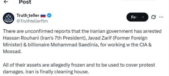 伊朗前总统疑似被捕,里通外敌罪名不小,下场可能比内贾德还惨? 要搞懂这事儿,得先说说鲁哈尼这号人物。他可不是普通政客,2013年到2021年当总统那阵子,算是伊朗政坛的"温和派旗帜"。 当年他带着扎里夫到处跑,硬是把僵持多年的伊核协议给签了,那会儿伊朗人都觉得熬出头了,制裁一松,石油能卖了,外资能进了,超市里的进口货都多了些。 可谁能想到,特朗普上台直接撕了协议,新一轮制裁比以前更狠,油价跌得底朝天,鸡蛋价格反倒涨了一倍,年轻人找工作比登天还难。这落差一出来,鲁哈尼的"外交功绩"瞬间成了"历史污点",保守派骂他"迷信西方""卖国家利益",这话听着刺耳,却正好戳中了伊朗人的痛处。 更重要的是,这两年伊朗国内就没安生过。去年年底从马什哈德开始,先是抗议鸡蛋涨价,后来越闹越大,有人喊着"别管叙利亚,先管我们肚子",甚至直接点名骂领导人。 保守派一琢磨,这不正好能借题发挥?他们一口咬定,这些抗议不是老百姓自发的,是鲁哈尼这帮人跟美国、以色列串通好的,故意煽动骚乱搞颠覆。 虽说没拿出实打实的证据,但架不住舆论发酵,毕竟鲁哈尼当年确实跟西方走得近,扎里夫还是美国常春藤毕业的,这"里通外敌"的帽子扣下来,就算不清不楚,也足够让他们百口莫辩。 要说这事儿光靠国内矛盾还闹不到这么大动静,关键是国际上也给了"助攻"。这两年伊朗跟中俄走得特别近,加入上合组织,搞人民币结算石油,还跟中俄在波斯湾搞实弹军演,摆明了要跟西方对着干。 可鲁哈尼偏有不少"旧账"能被翻出来:他以前说过"俄罗斯默许联合国制裁伊朗",扎里夫更直接骂过"俄方阻碍伊朗跟西方恢复关系"。现在中俄伊正是抱成团做事的时候,这些话就成了"破坏大局"的铁证。 俄罗斯外长拉夫罗夫干脆公开补刀,说当年伊核协议是扎里夫跟美国签的,俄罗斯就是个"观察者",言外之意就是"这锅我们不背"。这一下,鲁哈尼的事儿从国内路线之争,变成了影响中俄伊合作的"大事",哈梅内伊就算想压,保守派也不会答应。 有人说鲁哈尼下场可能比内贾德还惨,这话不是没道理。 内贾德当年虽说跟保守派闹掰,被限制人身自由,但罪名也就是"违反选举法",没碰"通敌"这根红线。可鲁哈尼现在被扣上的罪名,在伊朗那是能判重刑的,之前抓"内鬼"12天就抓了700个,可见这事儿有多敏感。 更关键的是,哈梅内伊年纪不小了,体制内早就开始铺垫权力交接,保守派必须把改革派的"余毒"清干净。鲁哈尼代表的"对西开放"路线,哪怕已经失势,只要他还在,就有人会惦记"另一条路"。 现在把他拿下,既是给国内立威,也是给中俄表忠心:伊朗的外交路线不会变,中俄伊轴心稳得很。 不过话说回来,这事儿还有点蹊跷。官方至今没正式宣布逮捕,鲁哈尼的家人也没吭声,只有议员和媒体在爆料。有一种说法是,这可能是保守派的"敲山震虎"。 先把风声放出去,冻结财产、限制露面,逼着鲁哈尼认个"软罪",比如"言论不当",既清算了旧账,又不至于把事儿闹得太难看,毕竟前总统真被定成"叛国贼",对伊朗国际形象也不好。 但也不排除硬来的可能,要是保守派觉得"震慑力度不够",或者鲁哈尼不肯低头,那"通敌"罪名真落实了,下场恐怕真得比内贾德惨得多。 我倒觉得,这事儿本质上就是场"借题发挥"的政治清算。 伊朗经济差、民生难,保守派得找个替罪羊,鲁哈尼刚好撞枪口上;中俄伊要巩固合作,就得扫清"路线杂音",鲁哈尼的旧言论正好成了靶子。所谓的"通敌"证据,更像是为了达成政治目的的"工具"——要是真有实锤,官方早就高调宣布了,犯不着让议员先放风。 可不管真相是啥,有一点很明确:伊朗政坛的"改革派时代"算是彻底翻篇了,接下来只会更保守、更抱团对抗西方。 至于鲁哈尼的最终下场,短期看大概率是"软处理",比如软禁加公开认错,保住一条命但彻底退出政治舞台;但要是国内再出乱子,或者中俄那边有更高的"表态需求",这事儿随时可能升级。 毕竟在伊朗的政治逻辑里,"稳定"和"路线正确"永远是第一位的,个人荣辱从来都是服务于这个大目标的。这出戏现在才刚拉开序幕,接下来就看保守派怎么收场,鲁哈尼又会不会"识时务"了。