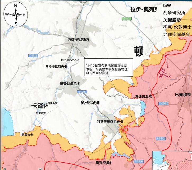 决战双子城之外围争夺:俄军试图切断通向伊久姆的公路,乌军反推取得进展 1月15日发布的地理定位视频显示,乌军近期在斯维亚托-波克罗夫斯克中部(斯拉维扬斯克以东)成功推进,打破了该区域长期僵持的态势,为后续防线巩固创造了有利条件。此前一日(1月14日),另一则地理定位视频亦证实,乌军在普列德捷奇涅西南部(康斯坦丁诺夫卡以东)实现突破,进一步压缩了俄军在双子城东南方向的活动空间。 面对乌军反推,俄军持续采取小规模渗透战术试图扭转局势。1月15日的战场视频显示,乌军在迪布罗瓦中部成功打击一处俄军渗透阵地,美国战争研究所认为,此次俄军渗透行动未对该地区的地形控制及前线作战区域态势造成实质性改变。乌克兰军事观察员马绍韦茨披露,俄军正从德雷洛沃向利曼西北方向的德罗比谢夫村郊外渗透,同时其前线部队已抵近迪布罗瓦-奥泽尔内一线,从扎里奇涅(迪布罗瓦东北部)发起进攻,企图侧翼包抄斯塔夫基的乌军部队,但尚未实现对迪布罗瓦和奥泽尔内的稳固控制。 俄军在斯拉维扬斯克方向的袭击范围广泛,1月14日至15日期间,先后在利曼市附近及周边多区域发动攻势,包括利曼西北部诺沃谢利夫卡、德罗比谢韦一带,北部斯塔夫基附近,东部扎里奇涅、托尔斯基一带,以及斯拉维扬斯克东部西韦尔斯克、扎基特涅、奥泽尔内等区域,并向里兹尼基夫卡方向推进,同时在斯拉维扬斯克东南部瓦休基夫卡、尼基福里夫卡、费多里夫卡附近展开行动。不过,俄罗斯军事博主关于俄军向特季亚尼夫卡东北、迪布罗瓦西部及南部推进并进入奥泽尔内南部的说法,目前仍属未经证实的报道。 乌军在防御中展现出较强的战术协同能力。斯拉维扬斯克方向某无人机营指挥官透露,俄军虽从多方向对德罗尼夫卡发动小规模集群攻击,试图渡过西弗斯基多内茨河并在普拉托尼夫卡郊区巩固阵地,但乌军已实现对通往德罗尼夫卡所有道路的火力控制,有效遏制了俄军重型装备的投入与推进。俄军方面,第144摩托化步兵师从利曼以北及西北方向杰列别茨河桥头堡展开行动,第123摩托化步兵旅的无人机操作员则重点打击斯维亚托-波克罗夫斯克地区的乌军阵地,第7摩托化步兵旅部队仍在扎基特涅附近活动,双方围绕关键据点的争夺持续升级。 当前双子城外围争夺的核心焦点的是利曼至伊久姆公路的控制权,俄军将切断该公路作为战略目标,试图封锁乌军后勤补给线,为合围双子城创造条件。马绍韦茨指出,俄军第20集团军(莫斯科军事区)将夺取利曼西北部新塞利夫卡—德罗比谢韦—普里希布—亚罗瓦地区列为首要任务,以此为支点推进公路封锁行动;第25集团军(中央军事区)则向利曼北、东、东南方向推进,企图间接驱离斯塔夫基乌军,配合第20集团军作战,但这一部署反而可能促使乌军向利曼西北方向集结,增加俄军作战复杂性。截至目前,俄军尚未突破乌军关键防线,公路封锁企图未能实现,且在多处阵地的控制上反复拉锯,未能形成有效战略优势。 康斯坦丁诺夫卡作为双子城南部重要支撑点,成为俄军近期重点攻击方向。马绍韦茨1月15日报告称,俄军已将主力兵力集中于康斯坦丁诺夫卡东南部多个定居点,采用“2-3人一组、无车辆配备”的战术,每日对别列斯托克、斯特帕尼夫卡(康斯坦丁诺夫卡西南)、普列希伊夫卡、伊万诺皮利亚等地发动10-12次袭击。该战术在康斯坦丁诺夫卡东北部取得有限成效,俄军从恰西夫亚尔向斯廷基推进约一公里,但始终未能巩固所占阵地,且因兵力不足,无法扩大攻击强度实现深度推进,虽企图包围康斯坦丁诺夫卡,却尚不具备发动大规模渗透与全面突击的作战能力。 俄军在康斯坦丁诺夫卡及周边的攻势覆盖多维度区域,1月14日至15日期间,不仅在市区及北部维罗柳比夫卡方向、东北部明基夫卡、马尔科韦一带并向普里维利亚推进,还在东南部奥列克桑德罗-舒尔蒂涅附近,南部普列希伊夫卡、伊万诺皮利亚、谢尔贝尼夫卡一带展开行动,同时在德鲁日基夫卡以南鲁辛亚尔附近及西南索菲伊夫卡附近活动,并向托列茨克、新巴甫利夫卡方向进击。另有俄罗斯军事博主称俄军已向贝列斯托克以南推进,此消息目前尚未得到证实。