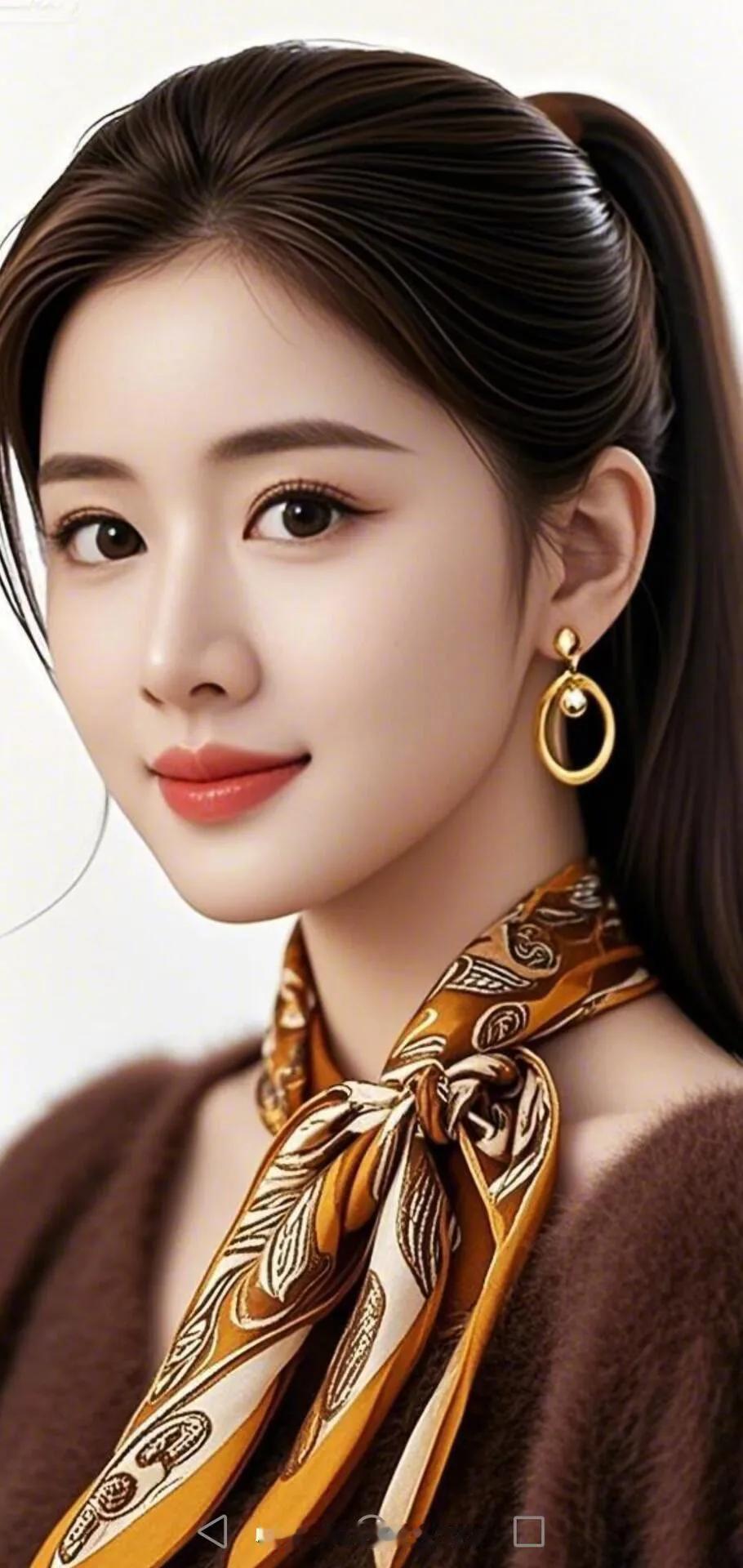 优雅气质,金色耳环搭配丝巾,尽显时尚魅力!
