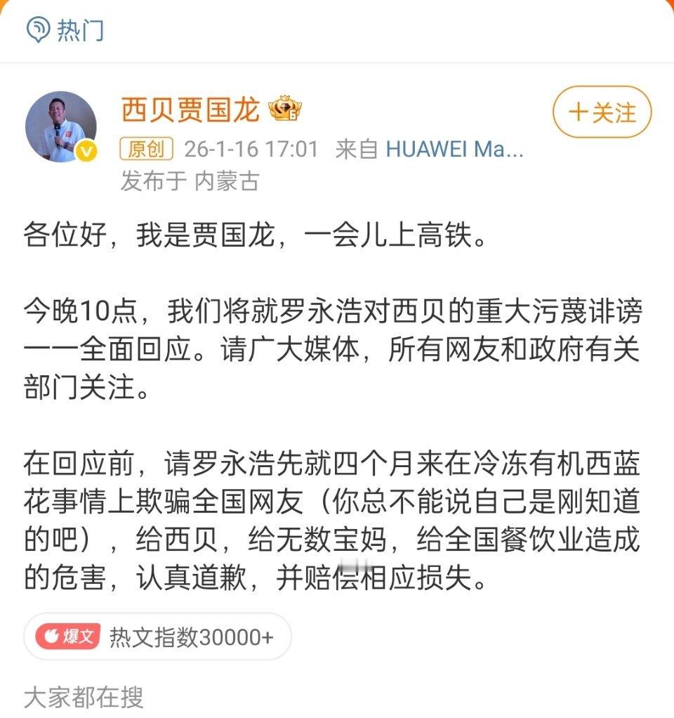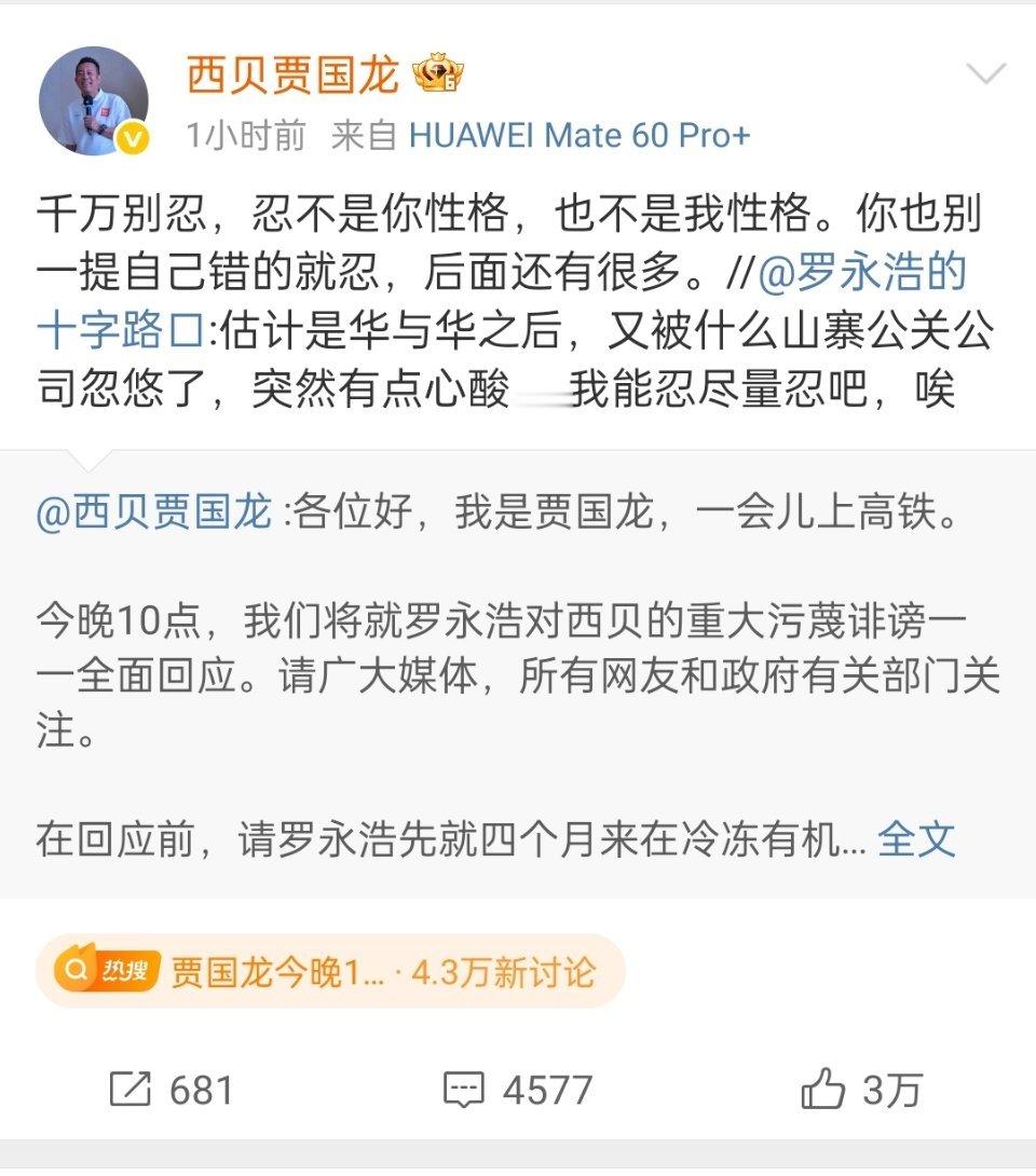贾国龙今晚10点全面回应罗永浩和西贝贾国龙算是彻底杠上了,你们觉得谁会赢?