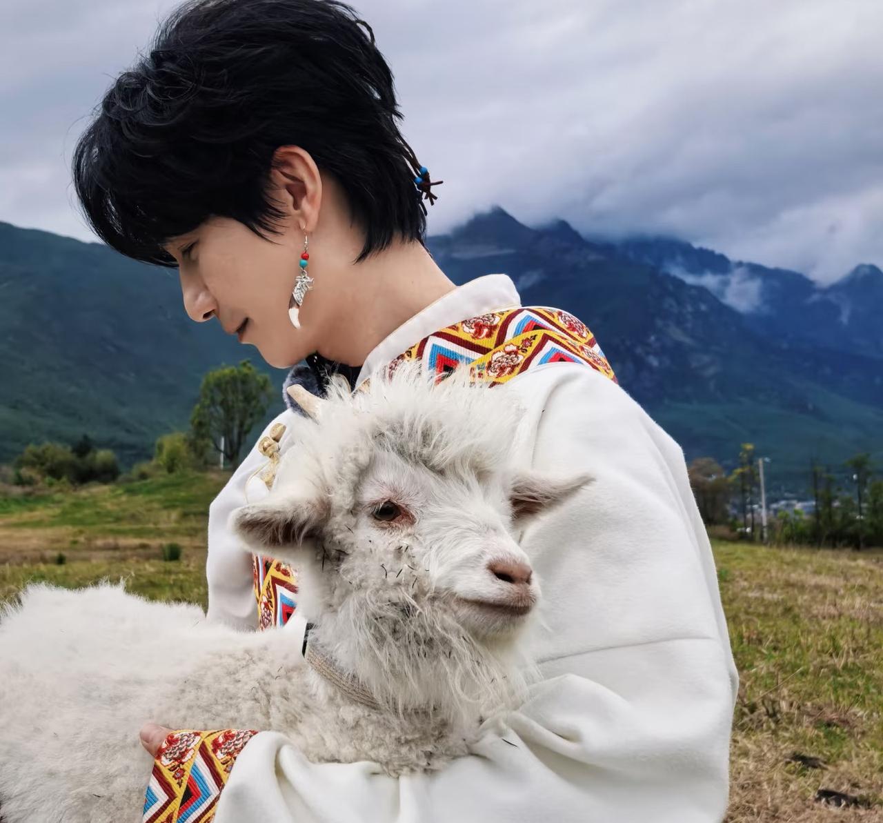 《快乐老友记》选服装这一段,陈楚生明显很有审美,一下子就挑中了白色藏袍。 果然咱生哥干啥都行,审美更是一流。 审美不仅表现在歌声里、舞台上以及创作中,更表现在日常的穿着打扮上。 那身白色藏袍穿上后立马化身“白马王子”,气质绝美。 后来生哥抱小羊那照片,需要美化的竟然是小羊,因为它有些脏乱的皮毛配不上生哥的美貌。