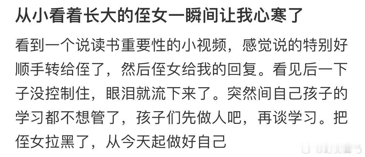 从小看着长大的侄女一瞬间让我心寒了 人是经不起反复失望的