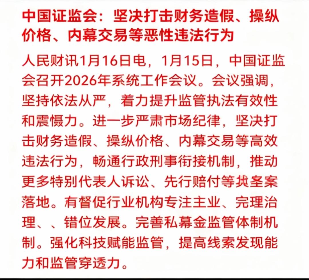 监管力度持续加码,下周市场人气主线大概率将继续承压,风险被迫逐步释放。那些还在期待行情复刻此前火热走势的投资者,下周恐怕要迎来一盆冷水。 1月14日市场迎来高潮后,市场整体成交量同步放大,这意味着主力资金已完成高位筹码的充分换手。此时若行情继续冲高,无疑会演变成脱离基本面的疯牛行情,监管层也正是在此节点果断出手。从上调融资保证金比例,到盘面开始频繁出现的跳水走势,即便指数又屡次被拉起,实则主力资金已经在为悄然离场做最后的努力。 但不少散户此时仍沉浸在疯牛行情的憧憬中,紧接着商业航天板块连续下挫,期间却不乏有些散户依然在贸然抄底,被套牢者更是侥幸等反弹,纷纷选择躺平,而这恰恰又为主力资金顺利撤退创造了有利条件。 在我看来,当前盘面,高位股的风险才刚刚拉开序幕。 不过需要明确的是,上述风险主要集中在人气方向。考虑到大盘整体稳定向上的格局需要维护,下周那些此前人气低迷的权重板块,反而有望因祸得福,成为市场护盘的主力军,同时也是短期资金布局的重要方向。