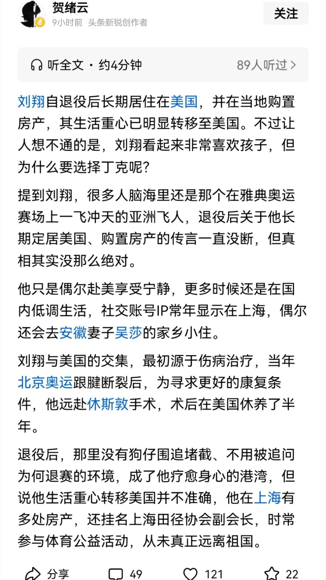 刘翔辟谣移民美国:“我一个爱国热血小青年,移民到哪里去?中国人爱中国!”查了下,网上造谣的人还蛮多的,好多影响力不小!是谁这么热衷于中国飞人造谣?刘翔回应移民美国