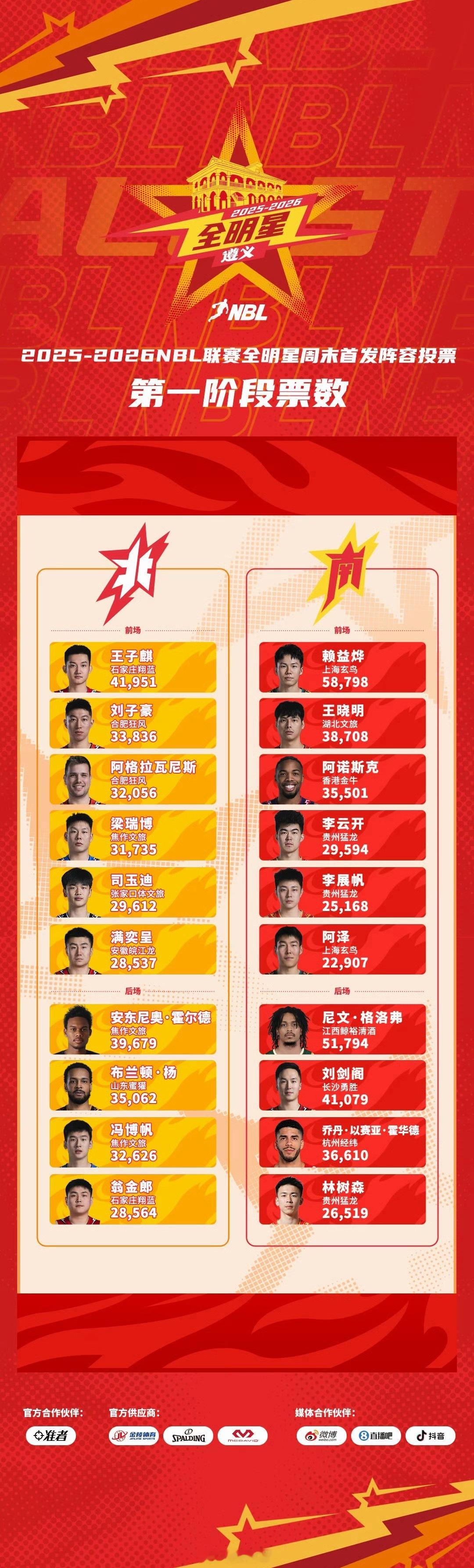 2025-26赛季nbl全明星 投票上,刚刚通过体测且一场NBL常规赛都还没打的赖益烨成为第一阶段的票王,人气确实顶级。