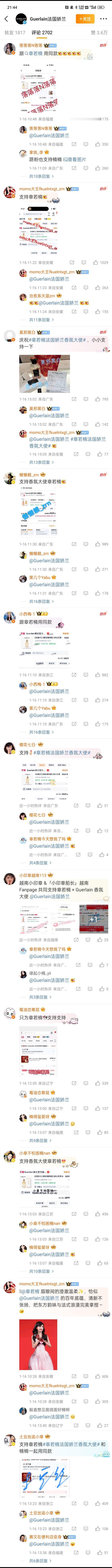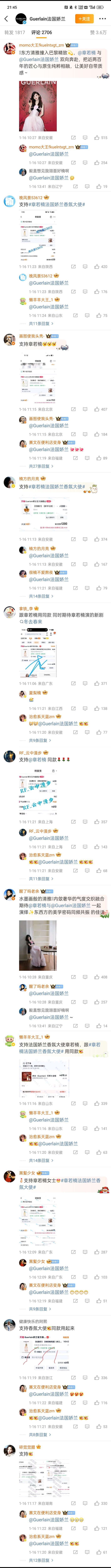 章若楠法国娇兰香氛大使空降官宣,评论区全部是粉丝晒单的,根本就拉不完,粉丝购买能力这么强章若楠法国娇兰香氛大使