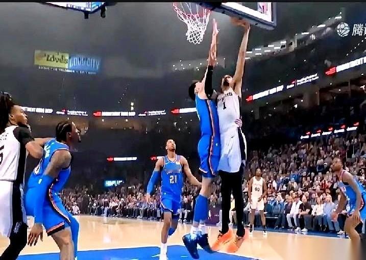 雷霆对马刺的开场哨刚响,未来十年的剧本,可能就被一个球写完了。 切特,一个两米一六的巨人,直挺挺地站在那,像一座塔。他对位的文班亚马,一个更高的巨人,却在三分线外像后卫一样,拿着球,一下、两下地试探。 场上其他八个人,那一刻几乎都停了,他们不是球员,是买了前排票的观众。 突然,文班亚马动了。没有花哨的运球,就是一个沉肩,一步就往里冲。雷霆另一个防守人立刻滑过来,想堵住他,想砌一堵墙。 那堵墙,在他面前跟纸糊的没什么区别。 文班亚马只用了一步,一步就迈过了正常人要跑三步的距离,整个人腾空而起。他那条长得不像话的左臂,像根攻城槌一样抡起来,越过切特拼命举起的、已经封到极限的手臂,把球狠狠地砸进了篮筐。 切特从空中落下来,身子晃了一下,站稳了。他没看球,也没看文班亚马,只是低头看了一眼地板。 这就叫一寸长,一寸强。 不,这已经不是长不长的问题了。这是两种物种在打球。 这一球,不是扣篮,是一次权力交接。它告诉所有人,这个联盟里原有的规则,那个关于身高和极限的规则,从今天起,得改写了。
