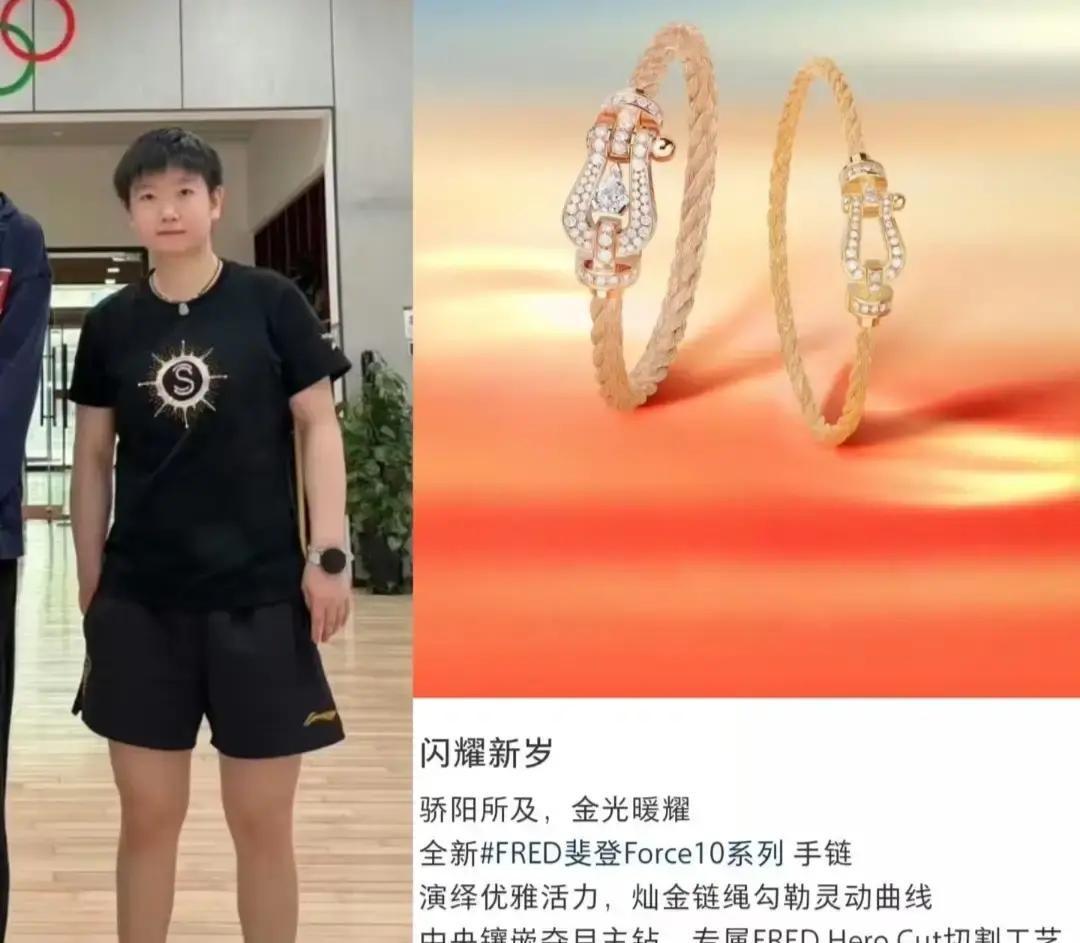 孙颖莎训练时被拍到手腕多了条银链,上面刻着“骄阳所及,金光暖耀”粉丝一看就炸,这八个字正好对上“小太阳”外号,像量身定做的小诗。 视频一出,抖音微博小红书全在转发,有人做成壁纸,有人喊话当纪录片标题。 队友也被扒出戴同款,大家猜是队内互送的幸运符。 她没回应,却一直戴着,热身、采访都不摘,等于默认这份心意。 小物件能火,是因为她把阳光和韧劲打进了每一拍。 努力的人戴啥都发光。