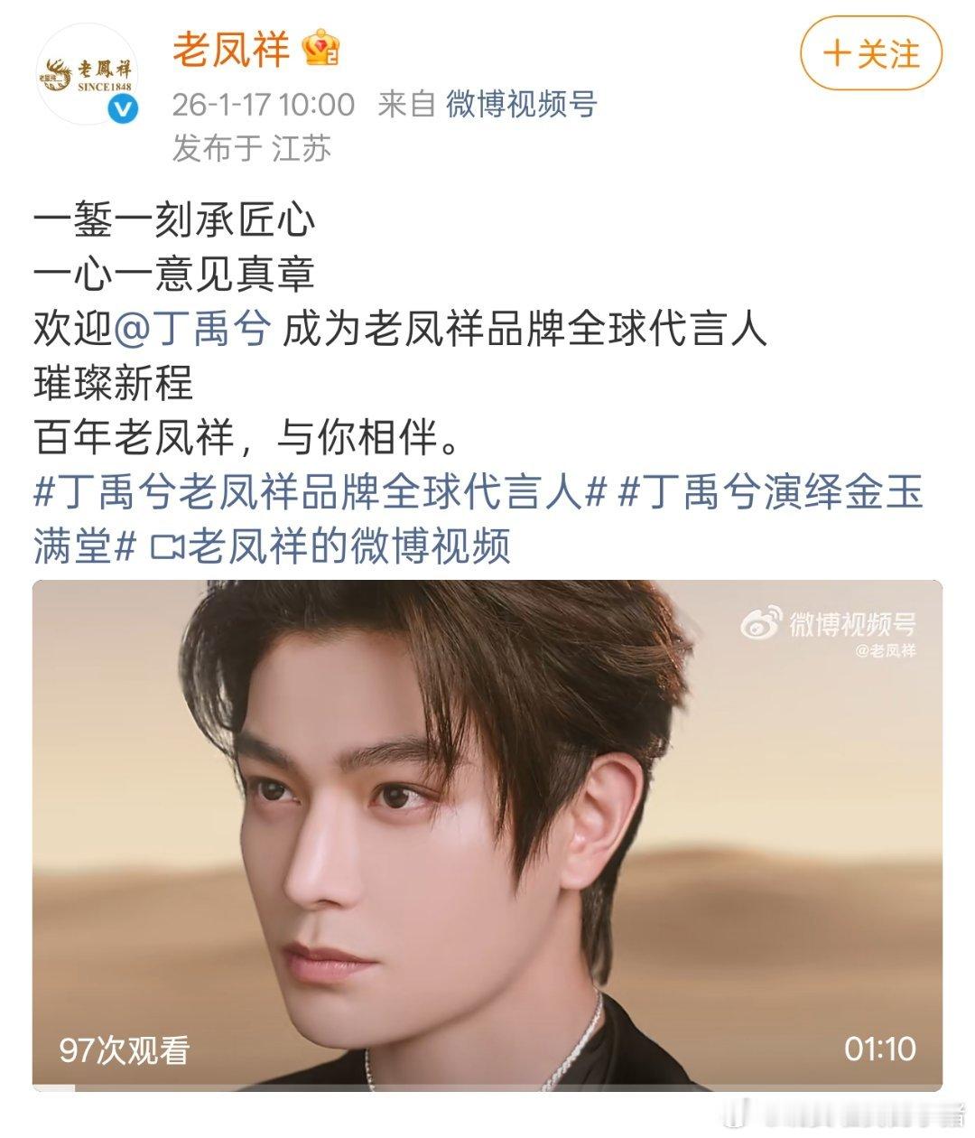 丁禹兮老凤祥全球代言人正式官宣