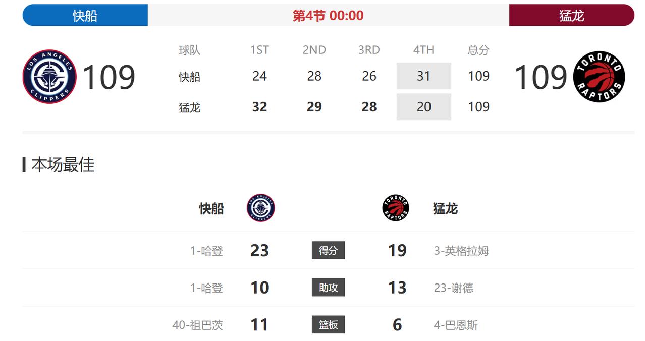 今天小卡不打,哈登前面手感也不太好,但第四节站了出来,最后连得8分,帮快船追平比分。可惜了绝杀不进,这下要打加时了……唉,那个3分太可惜了,弹两下没进 居然还看到有人怪哈登最后一投压时间,肯定要压时间啊,不然就算进了,猛龙也有时间再绝杀的,是不是到时又会有人怪哈登不压时间了