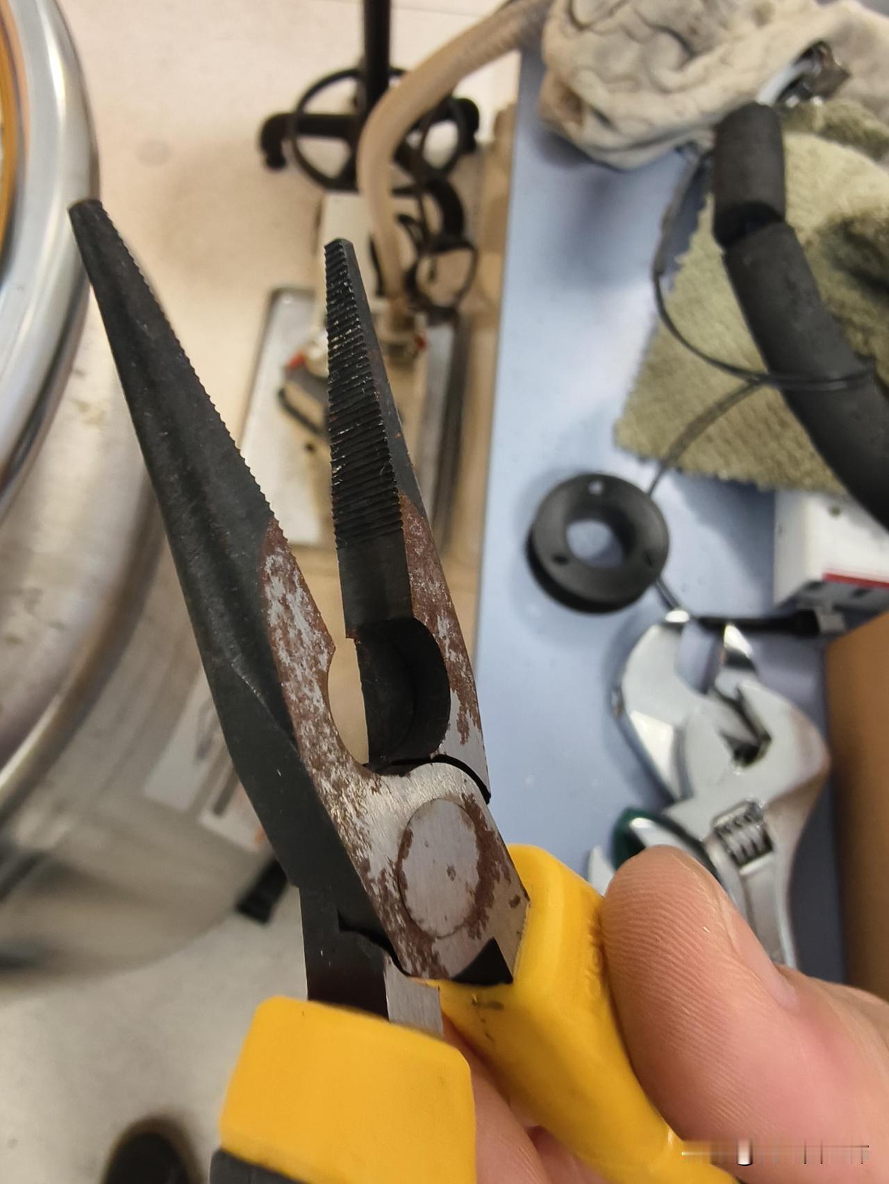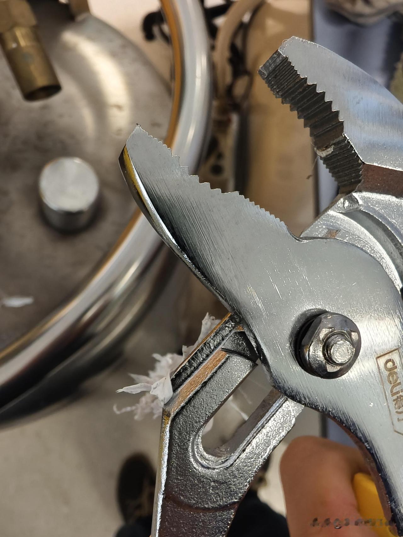 堂堂研究生被一个螺丝困住了 液氮气瓶上的一个六角螺丝接头被拧的变圆滑丝了,而且还被拧的特别紧,黄铜材质的,完全取不下来。 我尝试了各种工具,包括从淘宝上问商家,问ChatGPT解决办法,用扳手,虎头钳,管钳,都取不下来。买了锉刀手动锉了很长时间锉出一些棱角,但还是拧不下来!主要还是黄铜太软了,手锉的棱角卡不死,力气一大就滑丝。找了学校物业,物业原本不管实验室事的,但是我实在没办法,他们答应帮我弄,不过要收200,我觉得能取下来200也值得。 物业用大扳手,超大的管钳都拧不下来,然后用热喷枪热胀冷缩试一下,结果还是拧不下来。最后是用角磨机磨出棱角来,配合热胀冷缩的余温才拧下来。真是不容易。堂堂研究生被一个螺丝整的死去活来。还去专门借了一本金工实习的课本来学习一些磨棱角的技巧[捂脸R] 我感觉这种问题要找工厂里的钳工师傅才能解决,他们肯定有丰富的经验,但是我发现在平常生活中根本接触不到这类师傅,连联系方式都没法找,手机上能找到的只有家电维修这种师傅。在学校最专业的可能就是物业师傅了。 小小的螺丝真麻烦。