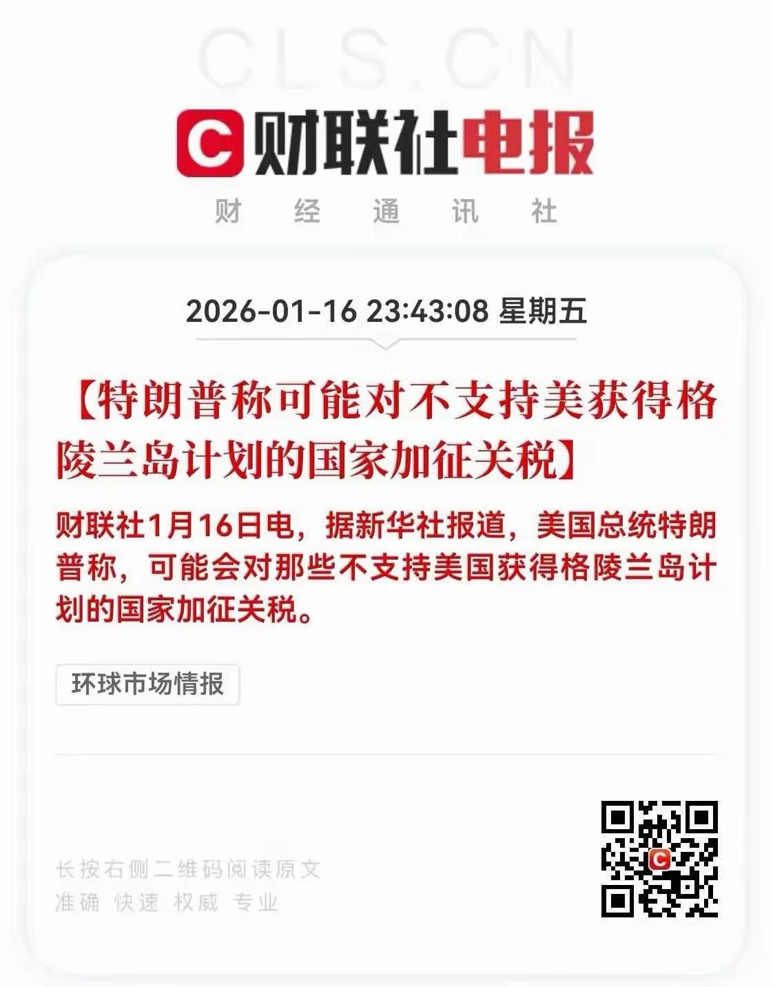 特朗普发话,对不支持美国拿到格陵兰岛的国家可能会加征关税。特朗普为了得到格陵兰岛,可谓是煞费苦心! 2026年1月16日,美国总统特朗普在白宫一场医疗问题圆桌会上抛出重磅言论,称若有国家不支持美国获得格陵兰岛,他可能对这些国家加征关税,这个逻辑与此前威胁欧洲制药企业的手段如出一辙,并大言不惭的说这是出于“国家安全”考量,特朗普这一表态,直接让国际社会目瞪口呆。 自2025年上任以来,他多次扬言要掌控这座世界第一大岛,先是要买,后来又传出可能会动用武力,现在又拿加征关税威胁别国,还任命专人担任格陵兰岛特使推进相关计划 。特朗普为得到格陵兰岛,费劲了心思。 格陵兰岛作为丹麦自治领地,拥有丰富的稀土、石油等资源,且地处北极战略要地,对美国的地缘政治布局极具价值 。但格陵兰岛自治政府多次明确表态“不可出售”,丹麦及法国、德国等欧洲多国也坚决反对美国的无理诉求,坚守国家主权与领土完整的国际法准则 。 特朗普的表态将美国的霸权主义表现的淋漓尽致。用经济胁迫手段逼迫他国屈服,既违背了主权平等、不干涉内政的国际法基本准则,也严重伤害了美国与盟友的关系。 现在,反对美国霸占格陵兰岛的国家主要就是欧洲国家,特朗普这话说白了就是说给欧洲听的,那么,欧洲各国面对特朗普这一举措,会不会就此屈服,大家都在观察。
