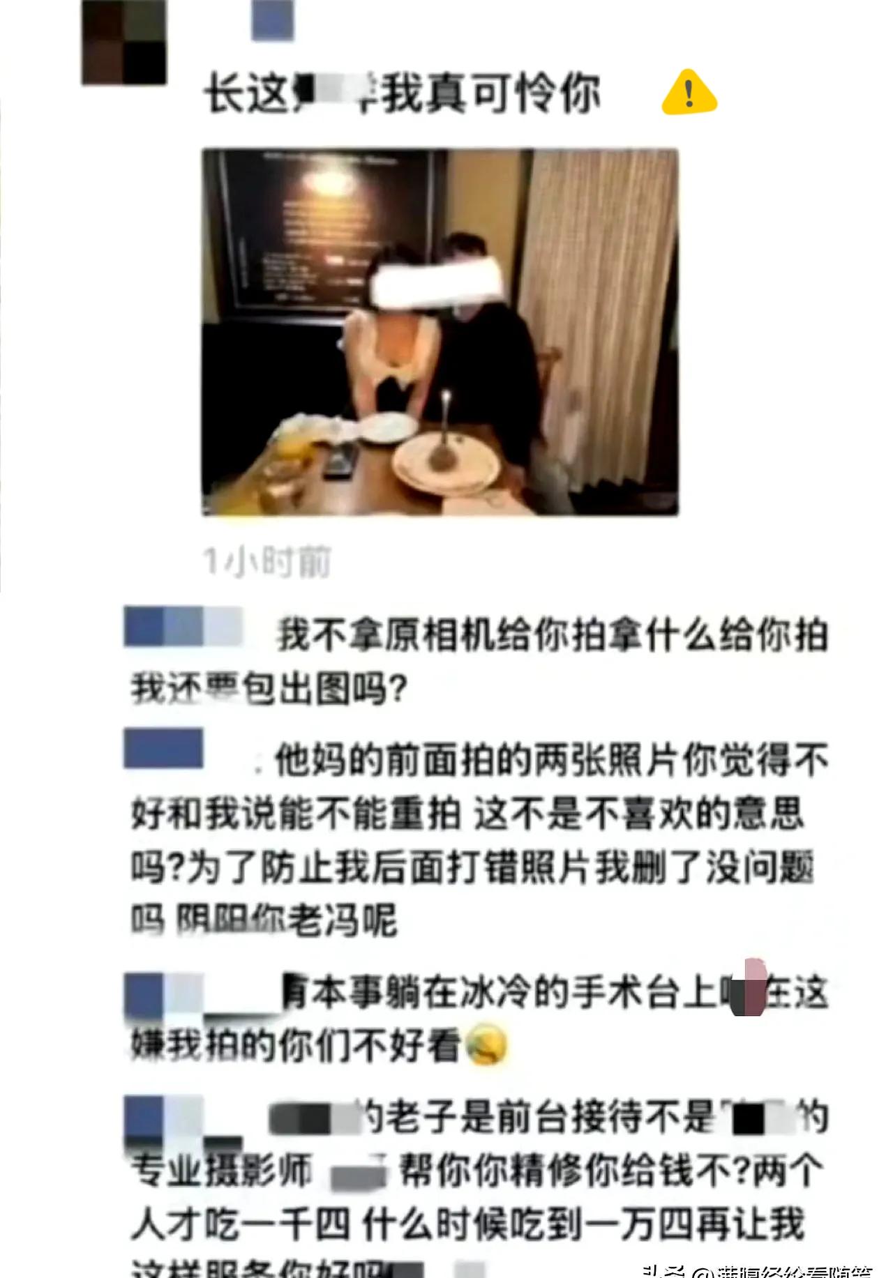 上海这事儿,看得我脊背发凉。 两个人吃顿饭花了1400,仅仅因为让服务员多拍了几张照片,想找个好角度,结果转头就被无码挂朋友圈辱骂,理由居然是“花14000再来让我服务”。 人均700多的高端餐厅,收着服务费却透着骨子里的势利。服务员拿着几千块工资,反倒成了“身价审判官”,真以为见多了有钱人,自己就跟着镀金了? 反观街边苍蝇馆子,哪怕只吃一碗面,老板也乐呵呵忙前忙后,这份真诚比所谓的高端服务珍贵多了。 这根本不是拍照的小事,是把服务和消费金额绑定的扭曲价值观。消费者花钱买的不只是饭菜,更是尊重,而不是被按消费额划分三六九等。老板开除人很果断,但这种“看人下菜碟”的行业病,真能根治吗? 你遇到过这种带着有色眼镜的服务吗?