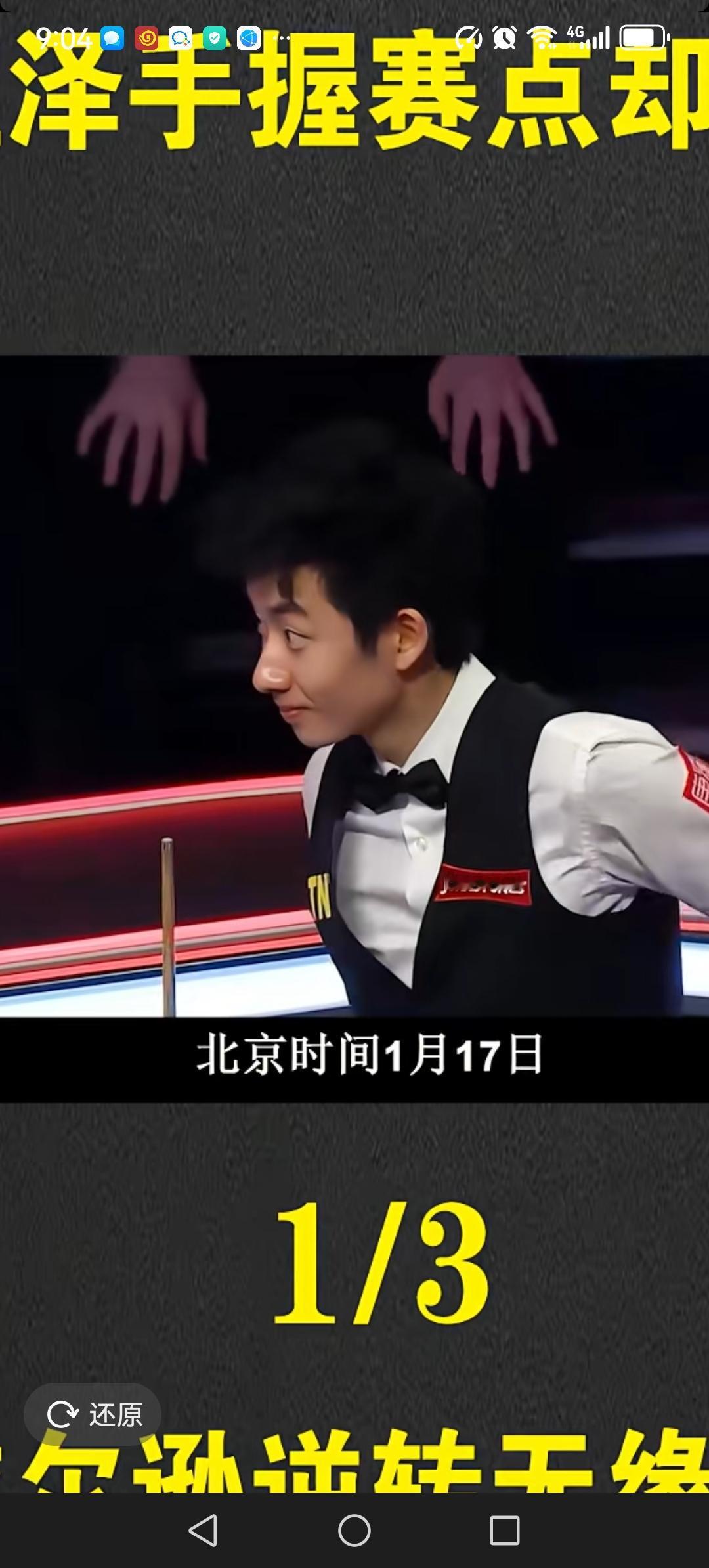 吴宜泽5:6被威尔逊逆转,无缘斯诺克大师赛决赛,真是太可惜了。吴宜泽还是输在了心态和经验上,没有延续6:0横扫肖国栋的状态,不过吴宜泽惜败威尔逊不丢人,年轻的吴宜泽首次大师赛就杀进了四强,值得点赞。 吴宜泽继续加油,未来属于你!