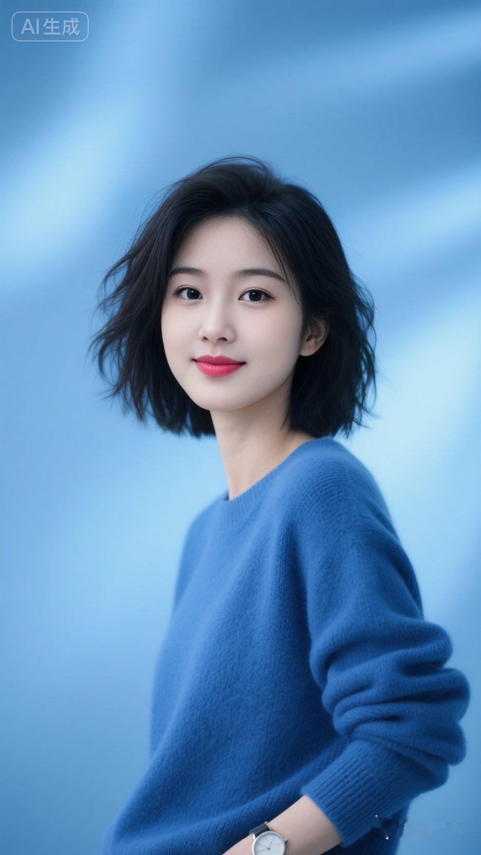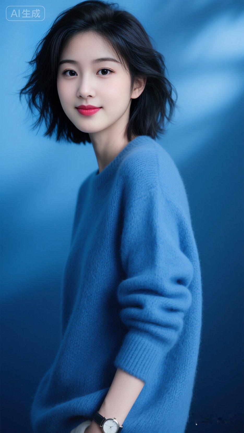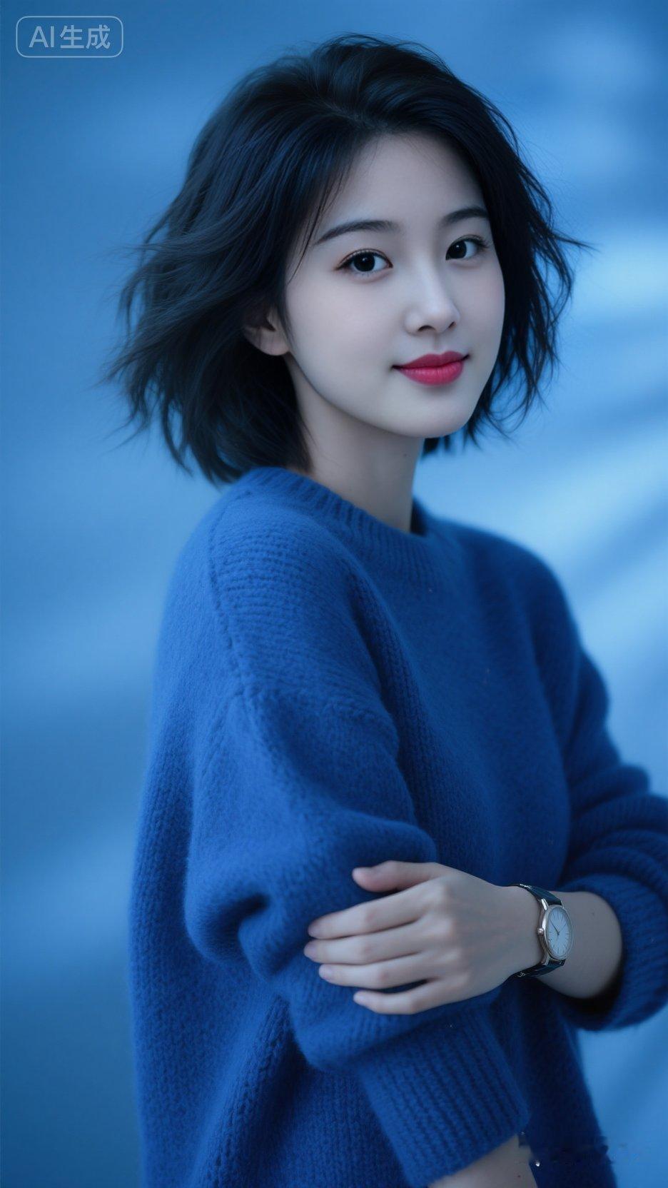 绝色美人更美,肤白细腻光滑,大眼睛双眼皮,短发飘逸微卷,蓬松,微光,超级美女,时