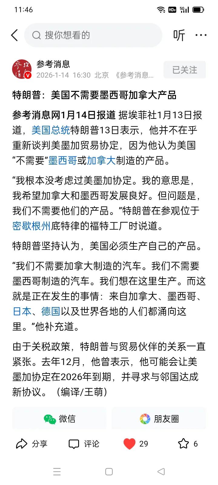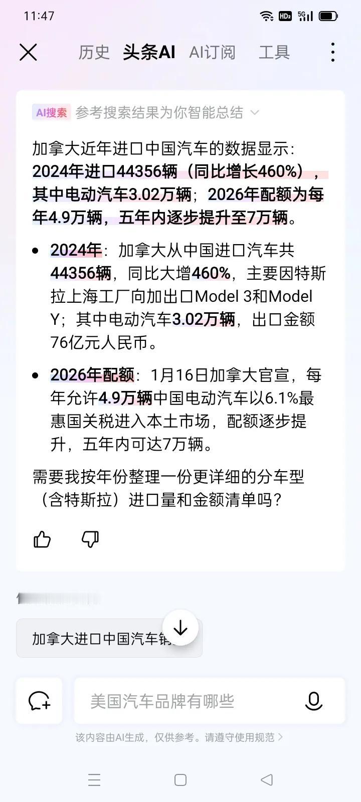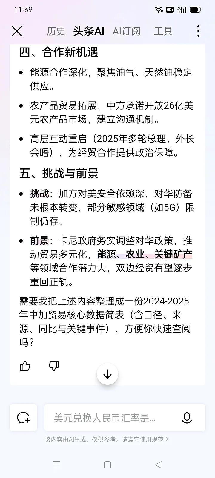 特朗普扬言‘不需要加拿大商品’ 加总理来华收获满满 *特朗普心心念念要把加拿大变成美国的第51个州,所以对加进行了贸易打压,他还说‘美国不需要加拿大商品’,并且打算在今年终止《美加墨贸易协定》。 *而中国却是加拿大商品的大金主,25年之前加拿大每年向中国出口7亿美元的豌豆,24年中国进口了668亿加元商品。 24年开始加拿大对中国的电动汽车、钢铝分别征收100%、25%关税并且加拿大军舰还穿越台湾海峡、挑衅中国! 25年8月中国从对加拿大油菜籽及其他农产品征收报复性关税。 *这次双方协议安排:1中国承诺向加拿大开放26亿美元的农产品市场! 2加拿大今年允许进口4.9万台中国的电动汽车,(不到其国内汽车市场份额的3%!)以后逐渐增加到7万台,关税6.1%。而且加拿大还要求到2030年一半的中国电动汽车销售价格低于3.5万美元! 其实24年加拿大从中国进口了3万台电动汽车(主要是特斯拉),当时加拿大的进口关税是100%!可见加拿大人需要电动汽车。 作为对比,24年加拿大进口日本汽车近14.7万台,总价56亿多美元。 由此可见,加拿大对中国商品还存在歧视性待遇! *加拿大的如意算盘打得很好,它打算到2030年之前对中国出口增加50%! *至关重要的是,加拿大仍然敌视中国,不允许华为和中兴通讯参与其国家的5G通信建设!
