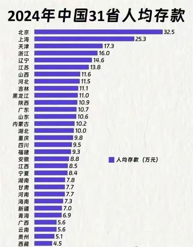 有时感觉自己不是生活在广东,感觉自己生活在非洲!因为看新闻,央行说去年中国人均存款11.8万,如果一个家庭有四口人,那么每个家庭就有47.2万固定存款!但是我感觉不仅仅是我没有这么多固定存款,包括身边的认识的朋友好像都没有!很多人是负债,也有人月光一族,也有人失业没有收入,也有人每个月收入不够支出,要借钱度日。 这边讲的人均存款11.8万,不是说你的房、车等资产,也不是说你的股票,更不是说你的理财,而是存在银行里面的现金! 特别是我们做小生意的,有时有一点现金要备多一点货,哪里有这么多现金存在银行不用?做生意的流动资金每天进进出出,不能算固定存款。 而且央行报道说,人均存款里面七成是长期固定存款,不是临时存钱。 当然,也许我的圈子相对比较差,可能你们大部分人均存款都超过了11.8万。 我认识的有年轻的刚刚出来打工的很多人,我看他们每个月都吃光用光,月光一族,有时工资发了只有十天是潇洒期,到月底全部都愁眉苦脸,甚至找老板提前预支工资! 那么,究竟哪一种群体相对存款多一点呢?那可能就是四五十岁体制内上班的人。 当然这个讲的是人均,就像我们福建老家龙岩,头条、抖音的创始人张一鸣,是我们龙岩的首富,财富达到4700亿,我可以在广东吹牛说:我跟张一鸣他两人的财富累积加起来4700亿!你服不服我?[捂脸][呲牙] 你今年存款了多少?其实如果普通大部分普通人,一年下来收入够支出,不用借钱,能够及时的还供房、供车的钱,不用借钱过生活,就已经算不错了! 因为一个家庭,其实主要收入就是成年的夫妻,两位儿女未成年还要不少的开销,不管是成长的费用还是上学的经费;年老的父母除非是体制内退休人员,如果说普通的家庭老人家没有收入,一个家庭主要就是靠成年的一对夫妻,依靠两个人的工作养活一个家庭,没有负债,已经算很不错了! 看图三,人均存款最多的还是北京,人均存款32.5万,大家知道北京什么多?官多:最起码体制内的公务员多,体制内的央企国企多,体制内的高校多,体制内的医院多,体制内的公益事业单位多;稍费一些出名的演艺明星也大多居住在北京。 作为全国经济GDP总量第一的广东,人均存款10.7万,放在全国才排第12,还不如东北的黑龙江、吉林、辽宁,东北三省土地多,他们往往干一季就可以了,所以一到冬天,在广东的湛江,还有海南省特别多东北三省的人,享受着温暖的冬天!广东还这么多包租公、包租婆,放在全国,才排在第12,这也有一点意外! (图片来源网络。如有侵权,请联系删除)