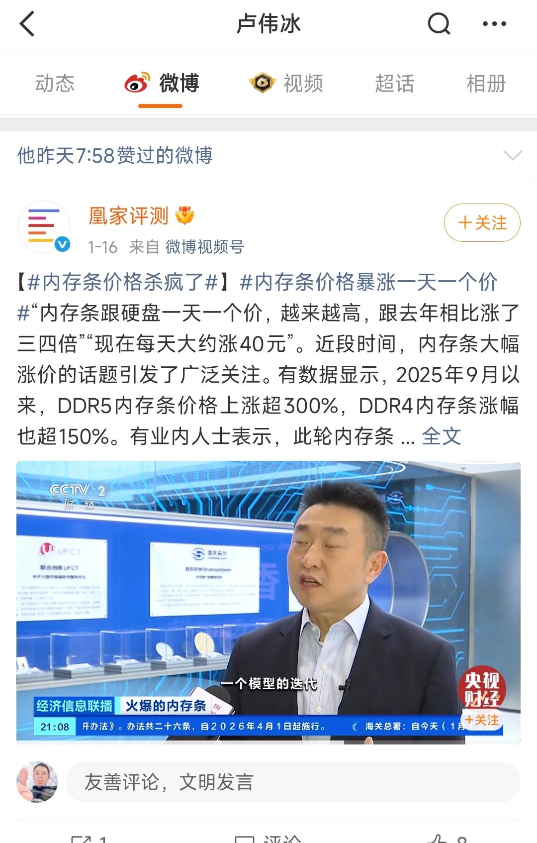 内存条涨价涨到什么程度了,连卢伟冰都要给相关报道点赞了。今年的手机界确实难,不仅要打造更精致高端的产品,还得控制手机的成本让利消费者。但是内存要是还这样涨下去,下半年的手机价格肯定是要再涨一波。奉劝一句,有购机需求的,真要早点下手。