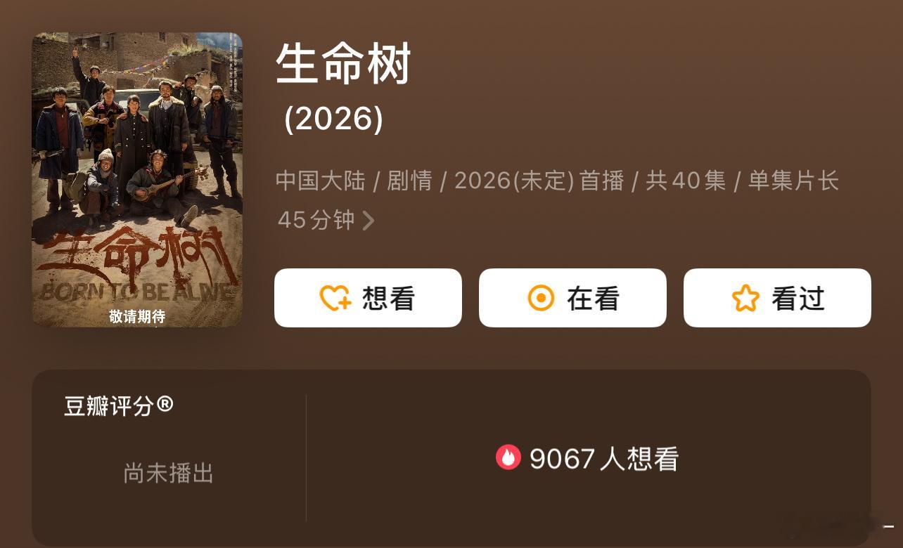 生命树看预告这剧是奔9分去的,不知道豆瓣给不给面子