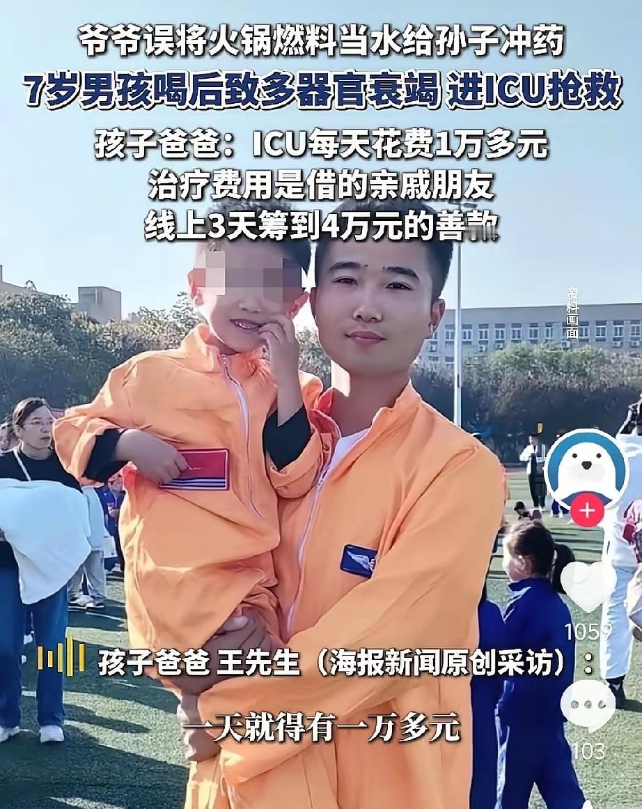 肺气炸了!7岁娃肝肾衰竭,这事看得人血压飙升!爸爸把无色无味的火锅燃料装矿泉水瓶,没贴标签也没吱声,爷爷冲药时随手拿起就给孩子喂了两次! 孩子吐到不行,爷俩才察觉不对送医,结果在妇幼保健院居然不选洗胃,非要先观察!耽误1小时没解药,又慌慌张张转院,来回折腾3次,足足20小时后才给孩子透析! 那会儿娃都没意识了,瞳孔快没了还尿血,医生直接让爸爸做好最坏打算,爸爸当场崩溃大哭!远在杭州打工的妈妈吓得腿软,立马辞职往家赶。 真的,危险物品乱装就是埋雷,关键时刻选错救治方式更是致命!你们身边有人把危险物品装食品饮料瓶的吗?