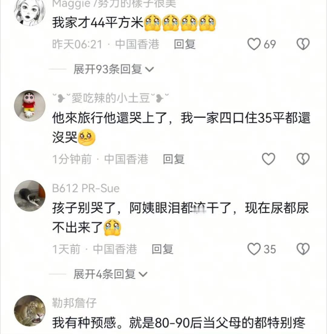 小男孩被香港酒店气哭,香港网友安慰道“孩子别哭了,阿姨得眼泪都流干了”“他来旅游他还哭上了,我一家四口住35平都没哭” 看到8平米的小房间,只有两张小床,男孩痛哭流涕地说:想要去住深圳的酒店,想要去澳门珠海