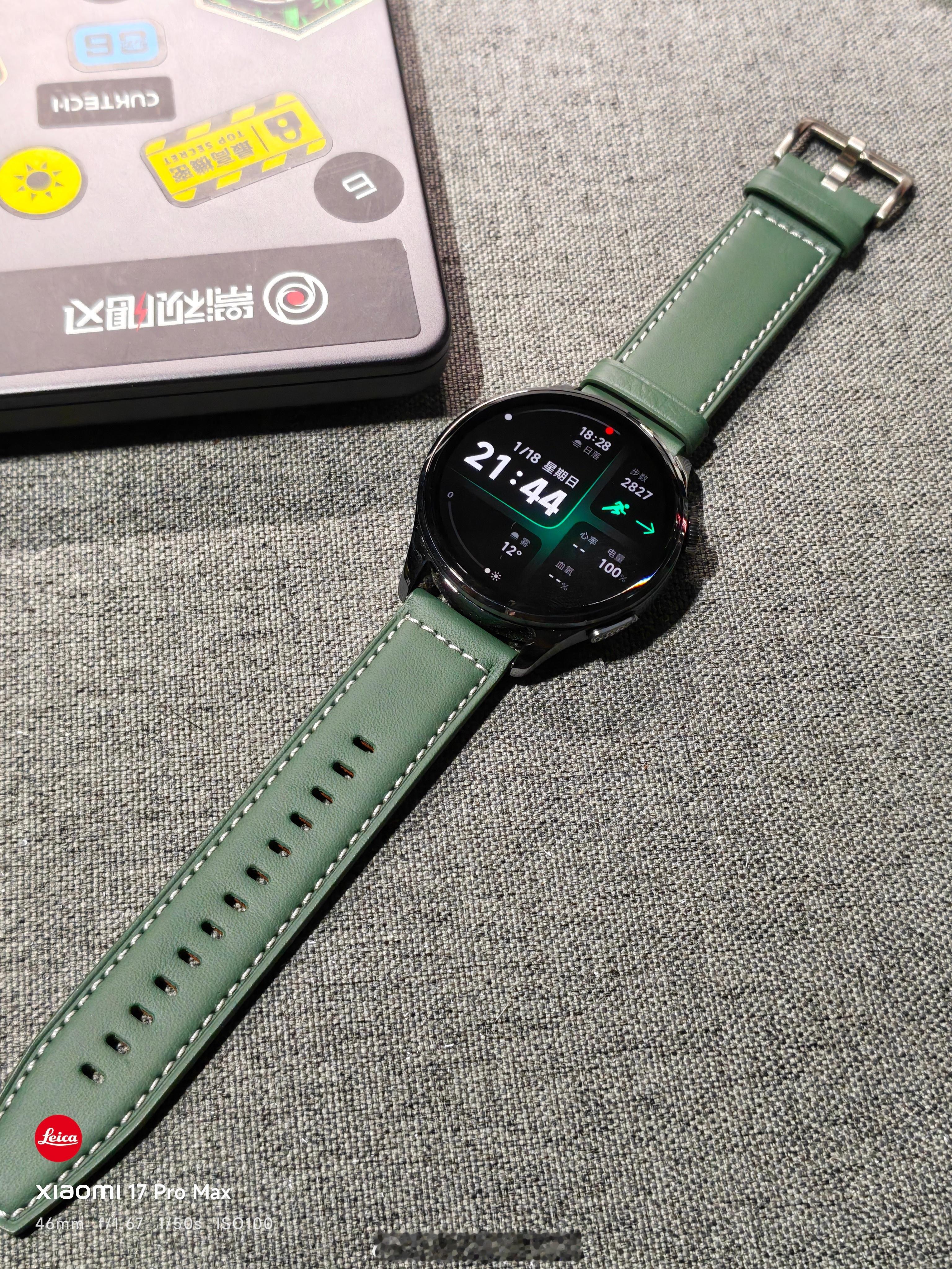 给Watch5换了个绿色牛皮表带,看着还可以嗷。我就喜欢这种全面屏无表圈设计