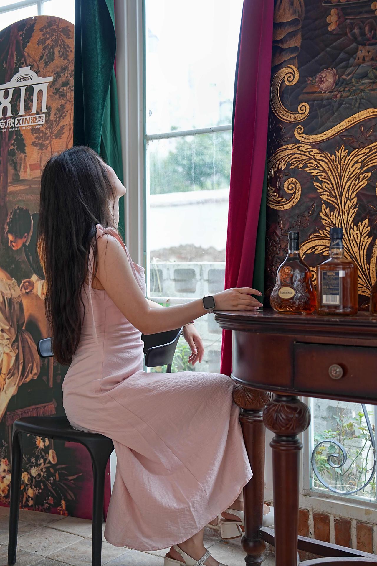 优雅黑裙,静谧时光,沉醉于咖啡馆的宁静氛围。