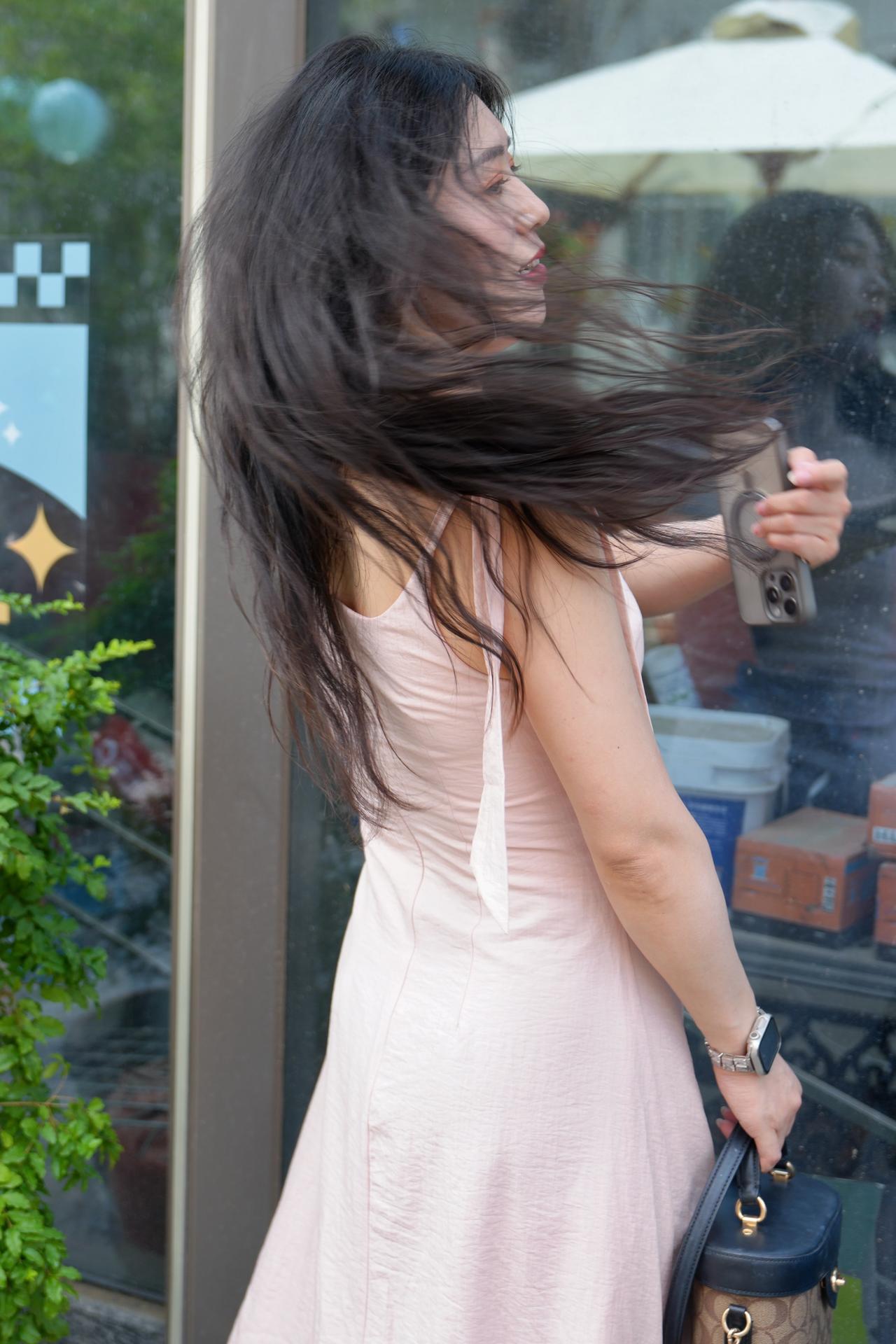 优雅气质,长卷发与米色长裙的完美搭配,手提包点缀,尽显时尚魅力!