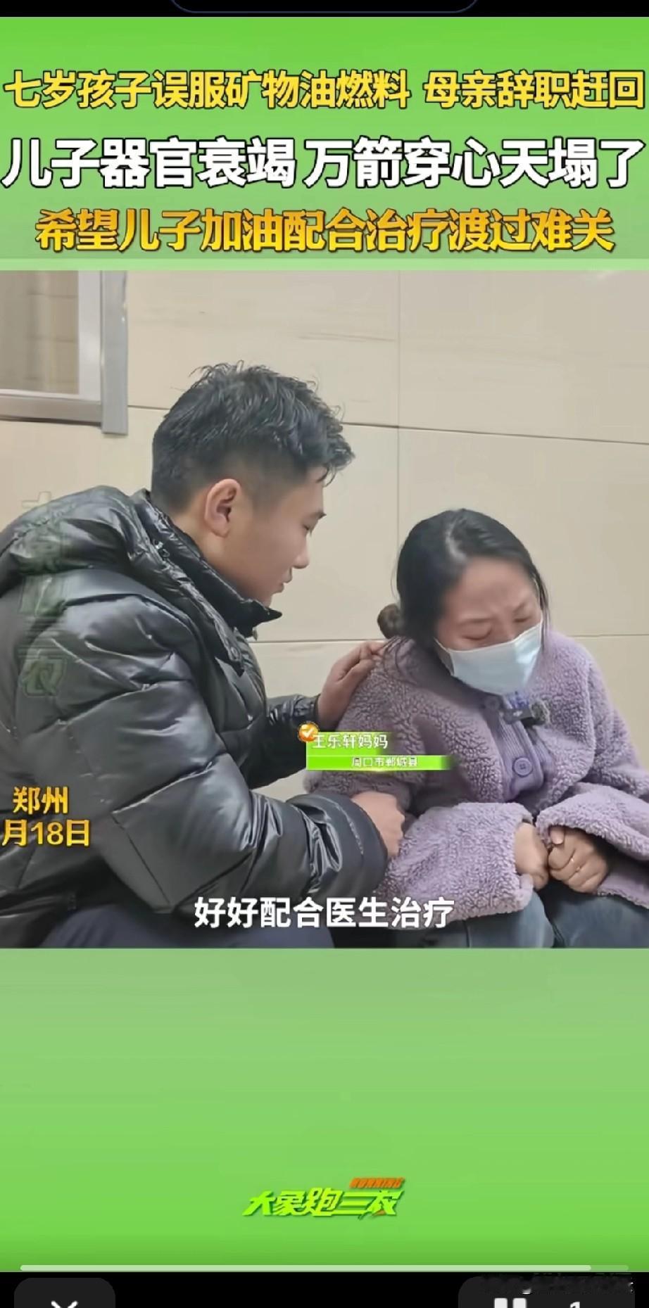 带入孩子妈妈的视角,天塌了。 误喝火锅燃料的男孩妈妈赶到医院后,孩子还在重症监护室抢救,孩子妈妈说,她在江苏上班,听到这个事后,马上辞了工作赶到医院,孩子一直在抢救,没能见到孩子。 妈妈说,孩子从小是她看大的。本来看到孩子大点了,她才出去打工,没想到就遇到这种事。 确实,自己一点点看大的孩子,如今躺在重症监护室,生死未卜,当妈的心疼死了。 这不得不说,看孩子还是女人靠谱点。孩子爸爸把火锅燃料拿回家,明明他朋友嘱咐他了,千万别被误喝。可是他倒在矿泉水瓶里就不管了,哪怕你在瓶子上贴个标签,提示一下也好啊。 孩子爷爷给孙子兑感冒药,打开的矿泉水瓶也不看一下,就直接倒,这也太大意了。还有他们明知孩子喝了火锅燃料,开始在医院时却要先观察,耽误了最佳抢救时间。这爷俩都有点不靠谱。 如果是妈妈在家,我觉得应该不会犯这种错误。现在说什么都晚了,给大家提个醒,也希望孩子能早日康复。[祈祷][祈祷][祈祷][祈祷][祈祷][祈祷][祈祷]