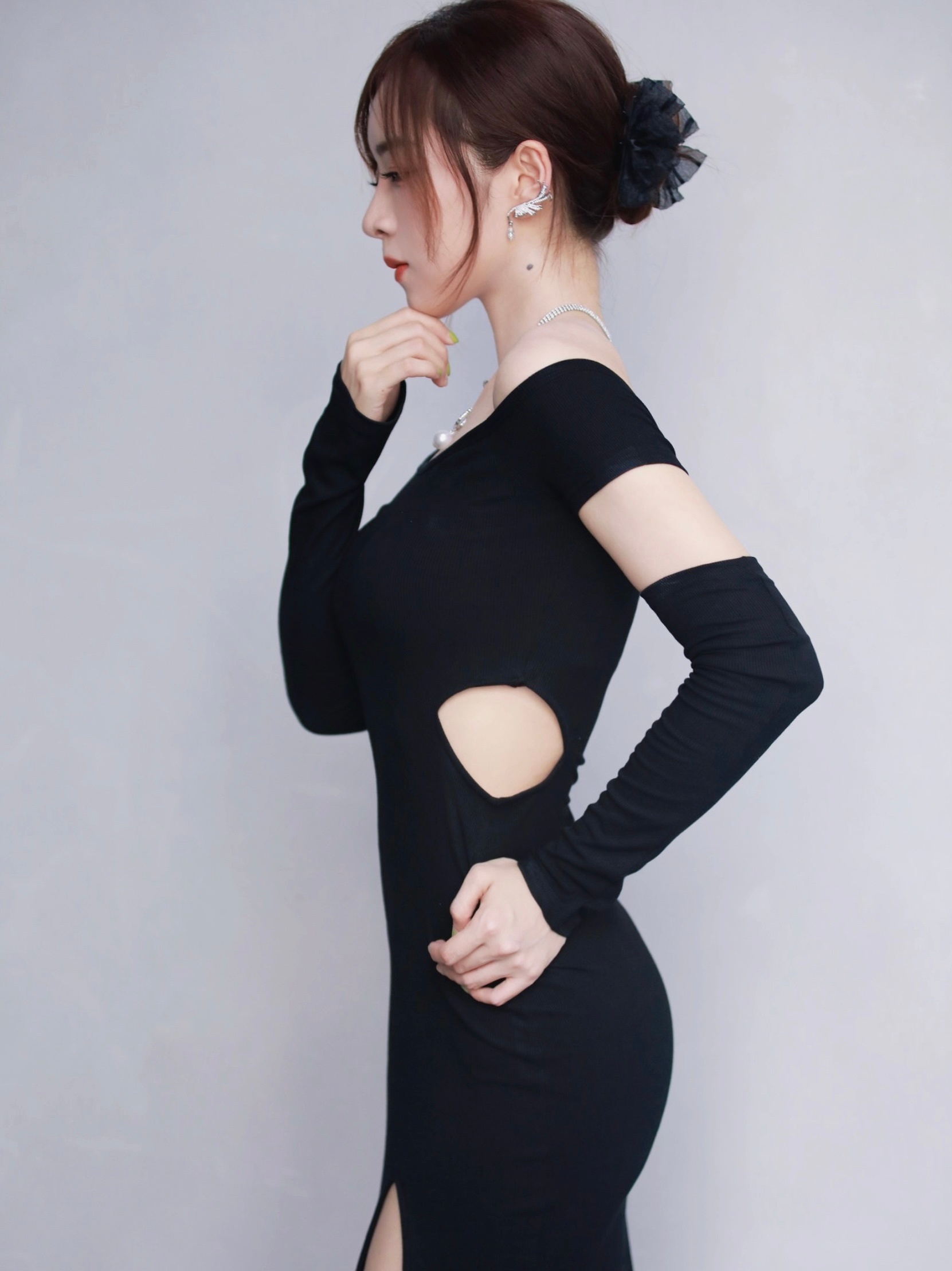 佟丽娅新疆限定皮肤美成啥了 一组黑色裙装美腿造型。佟丽娅